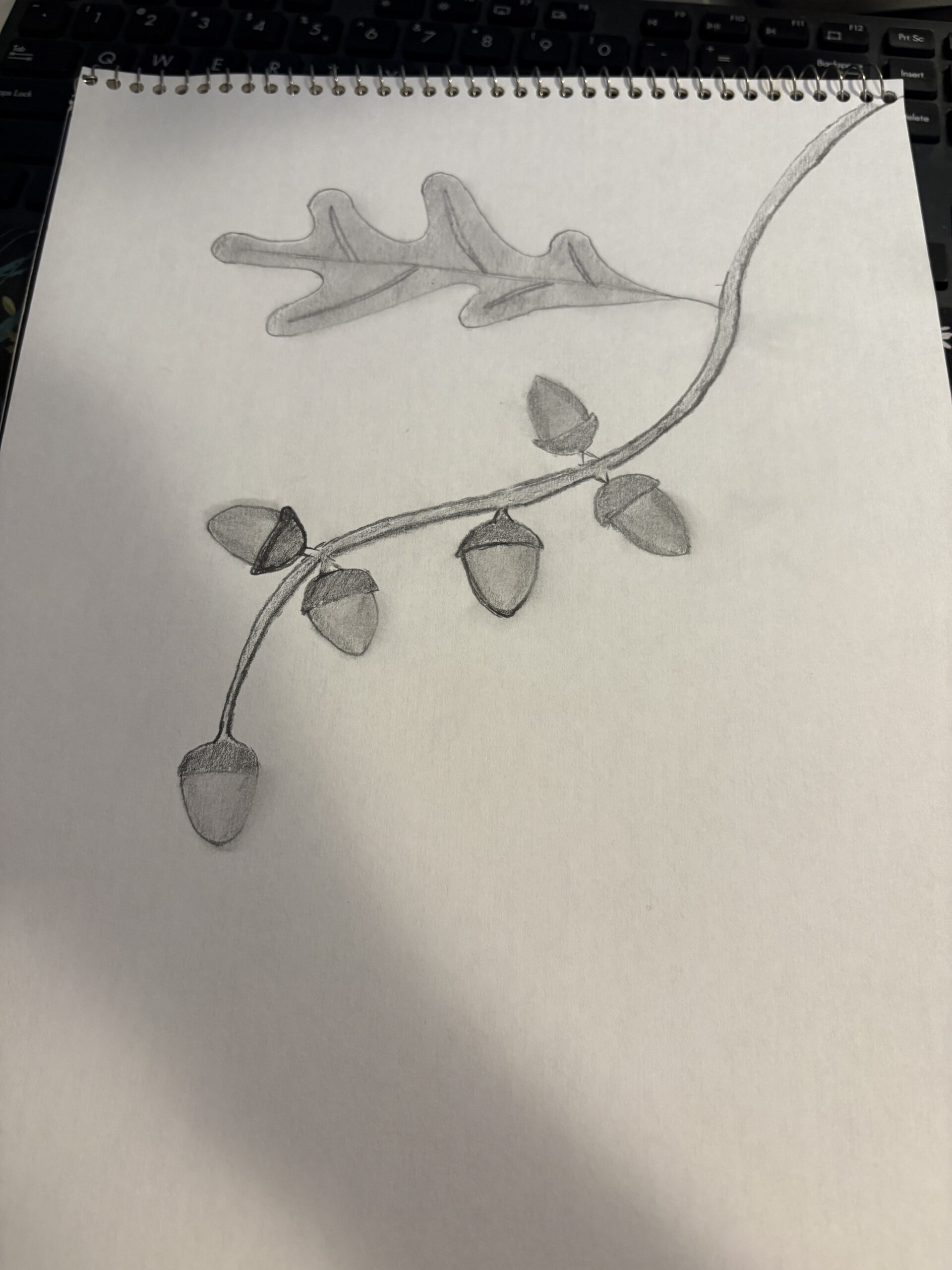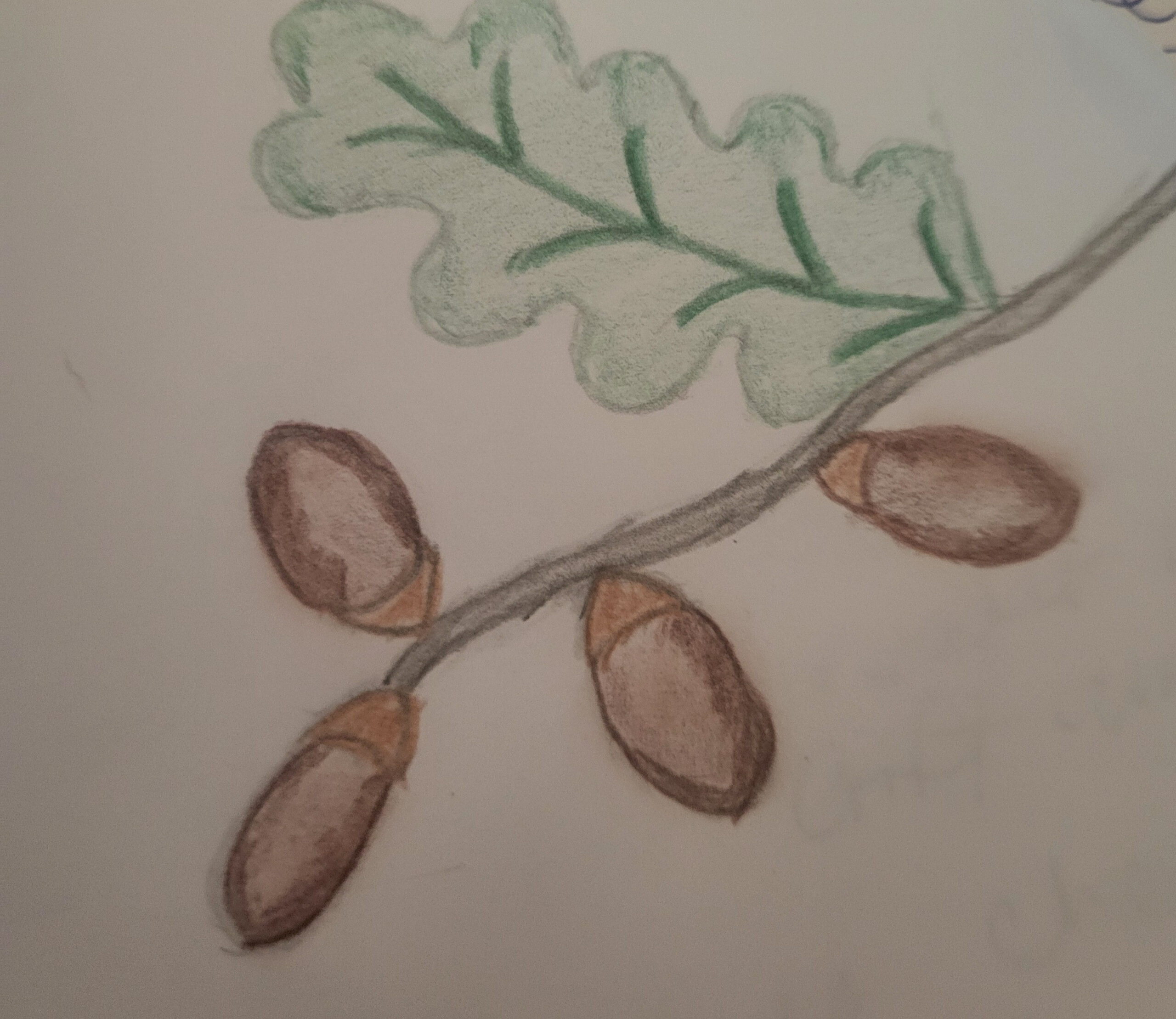 Mateo-I also feel that I struggle with the shading! But I think the addition of color in your drawing looks great! The black caps on your brown acorns gives the perfect contrast! Great job!