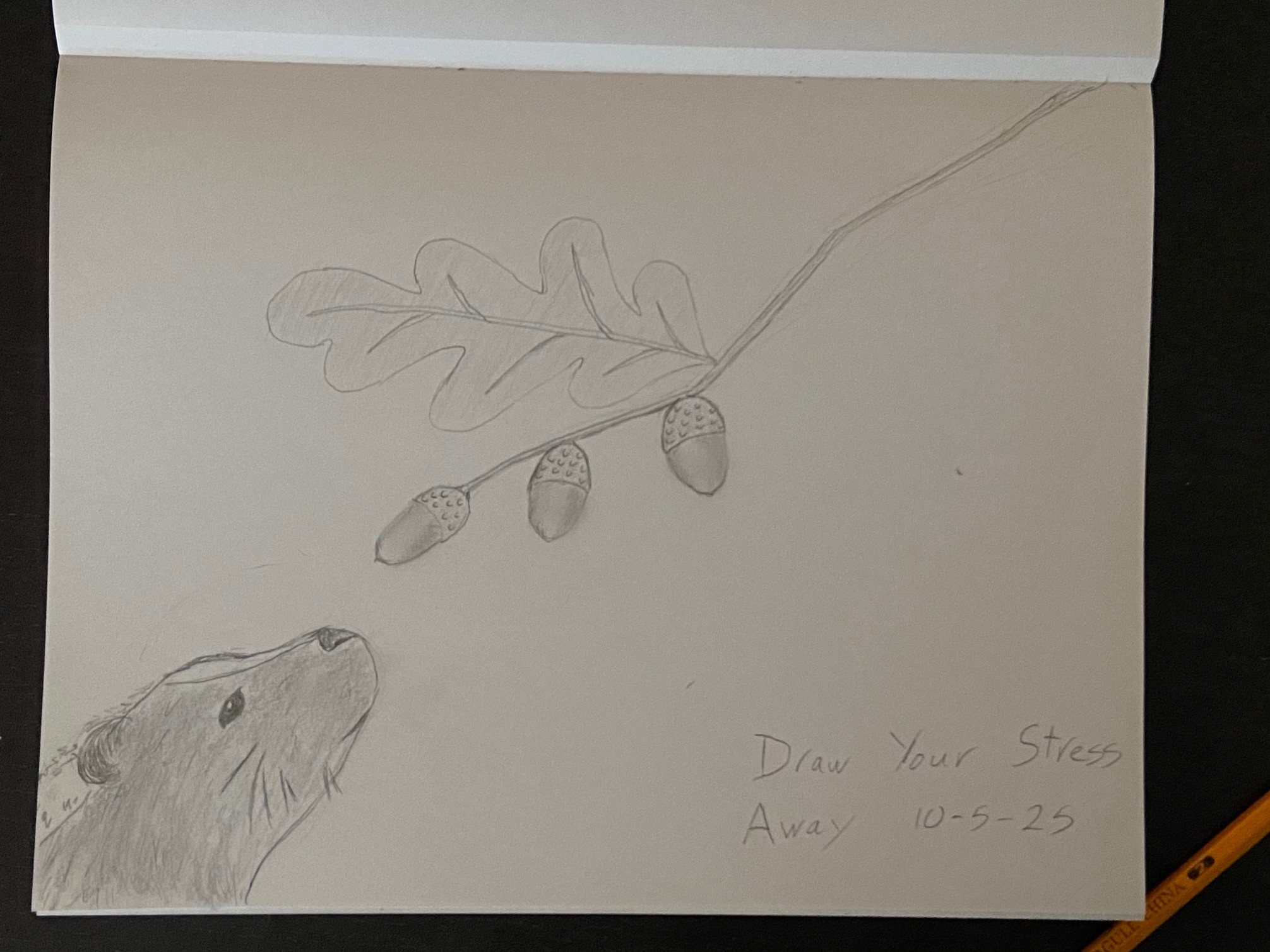 See-I learned something new today too! I did not know that skunks would eat acorns! I imagine if hungry enough, they would find a way to climb high enough to pick them off the tree…or maybe they are smart enough to just wait until they fall to the ground! What a creative addition to your sketch today. I love it when people add their own touch to the drawings-so many creative ideas out there and I find myself inspired by them! Nice work, Marcus!