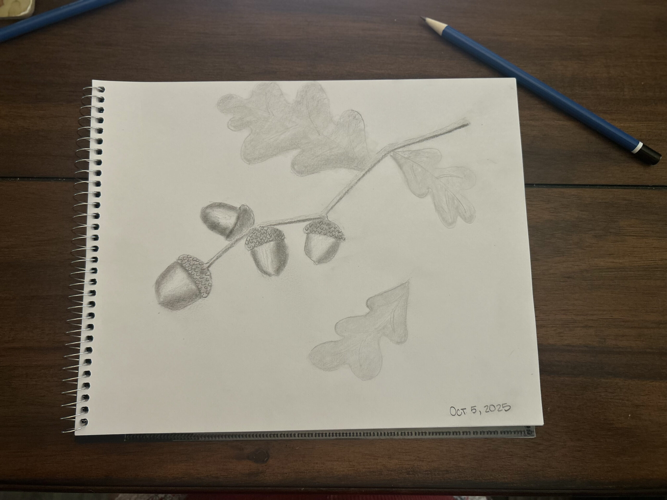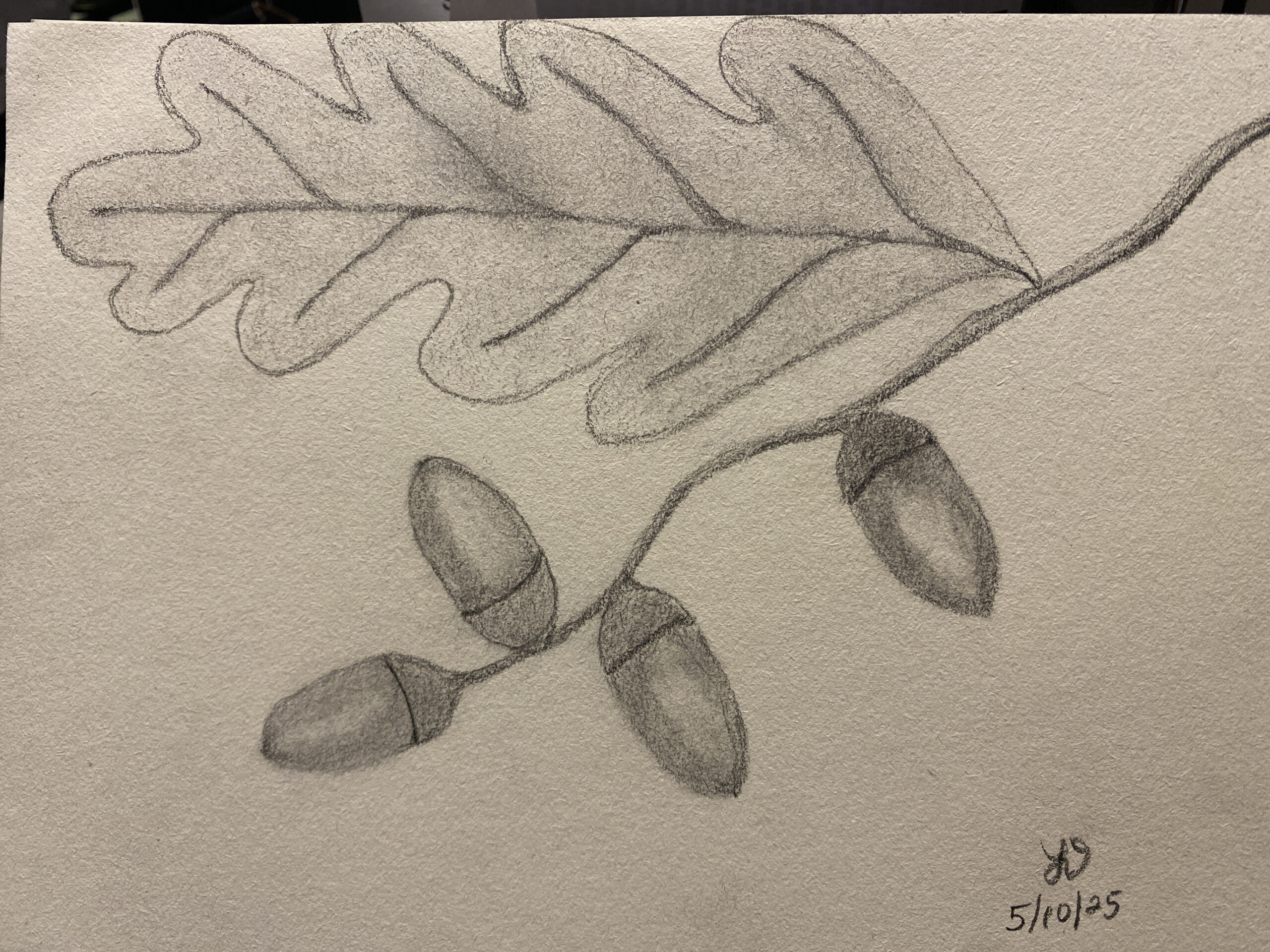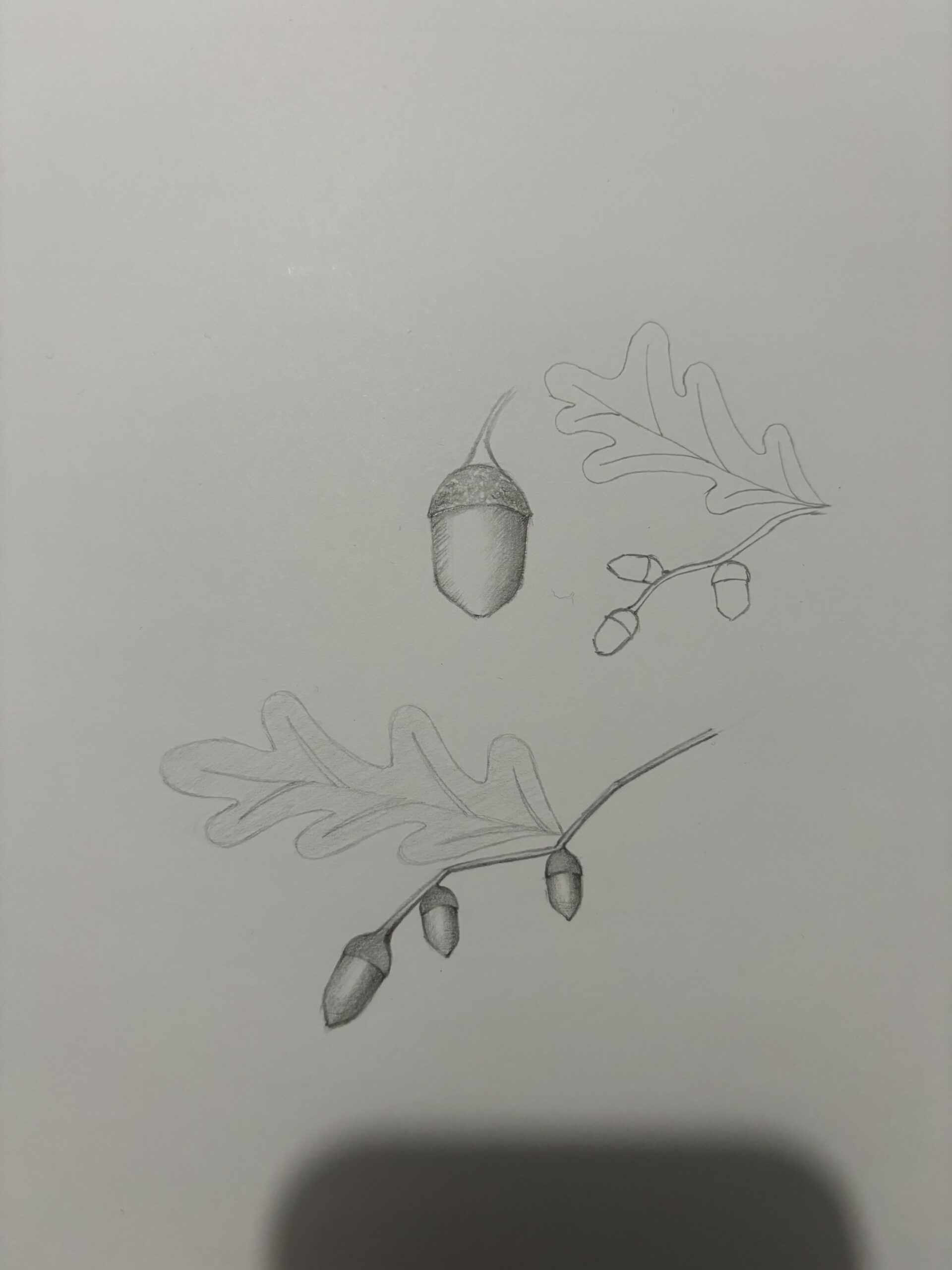 I still struggle with shading-I tend to have such a heavy hand and can’t quite find the right pencil to use. Be that as it may, here are my acorns!