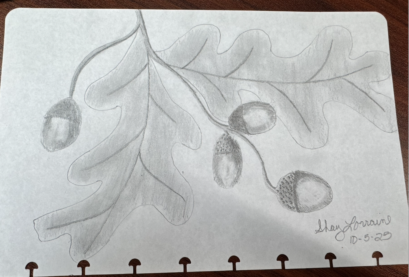 Oh, Sheala, I’m so glad you shared today! Your sketch is beautiful! The acorns look so realistic with the gradient shading. I love the texture in the caps! Very nice work!