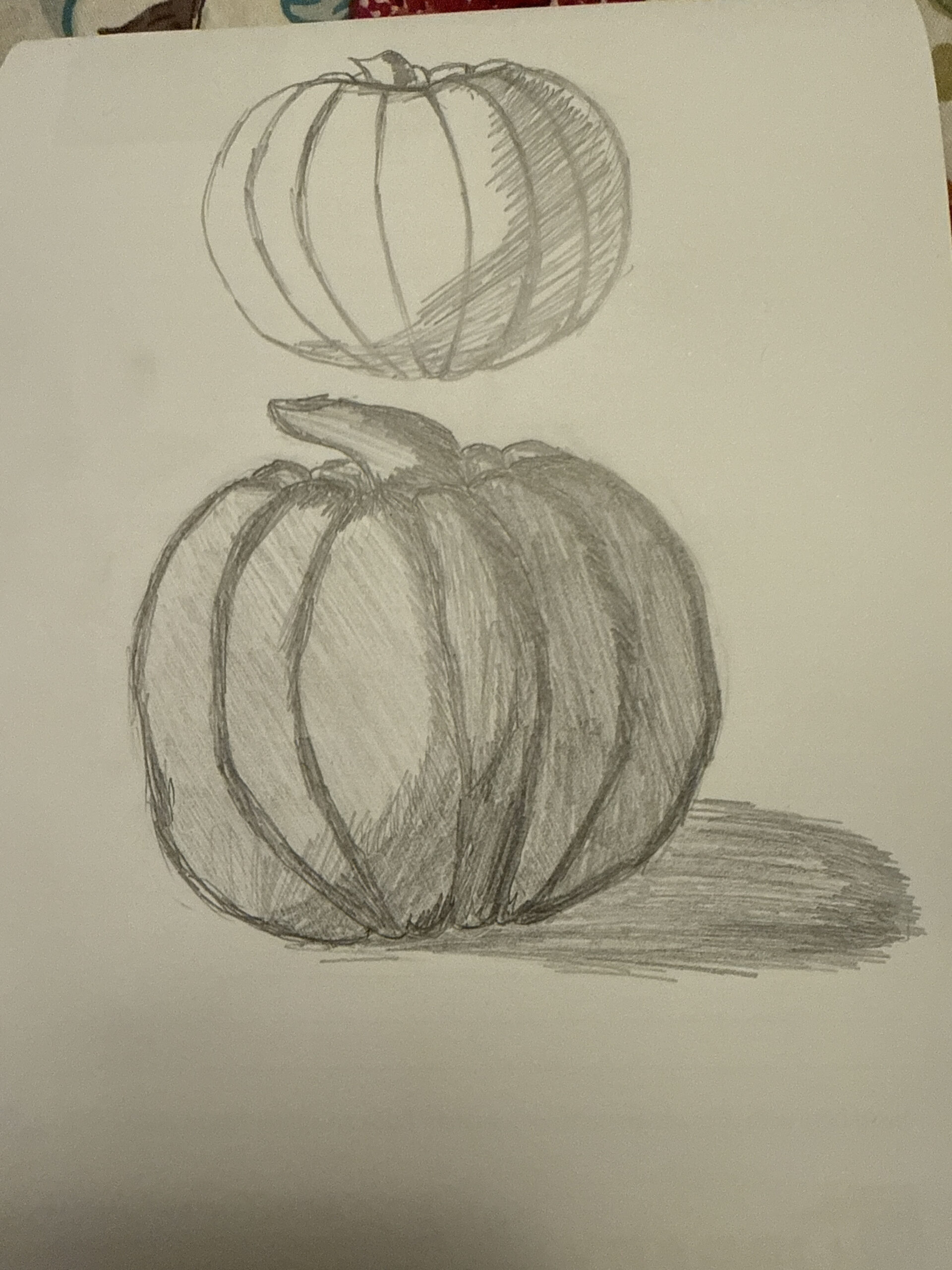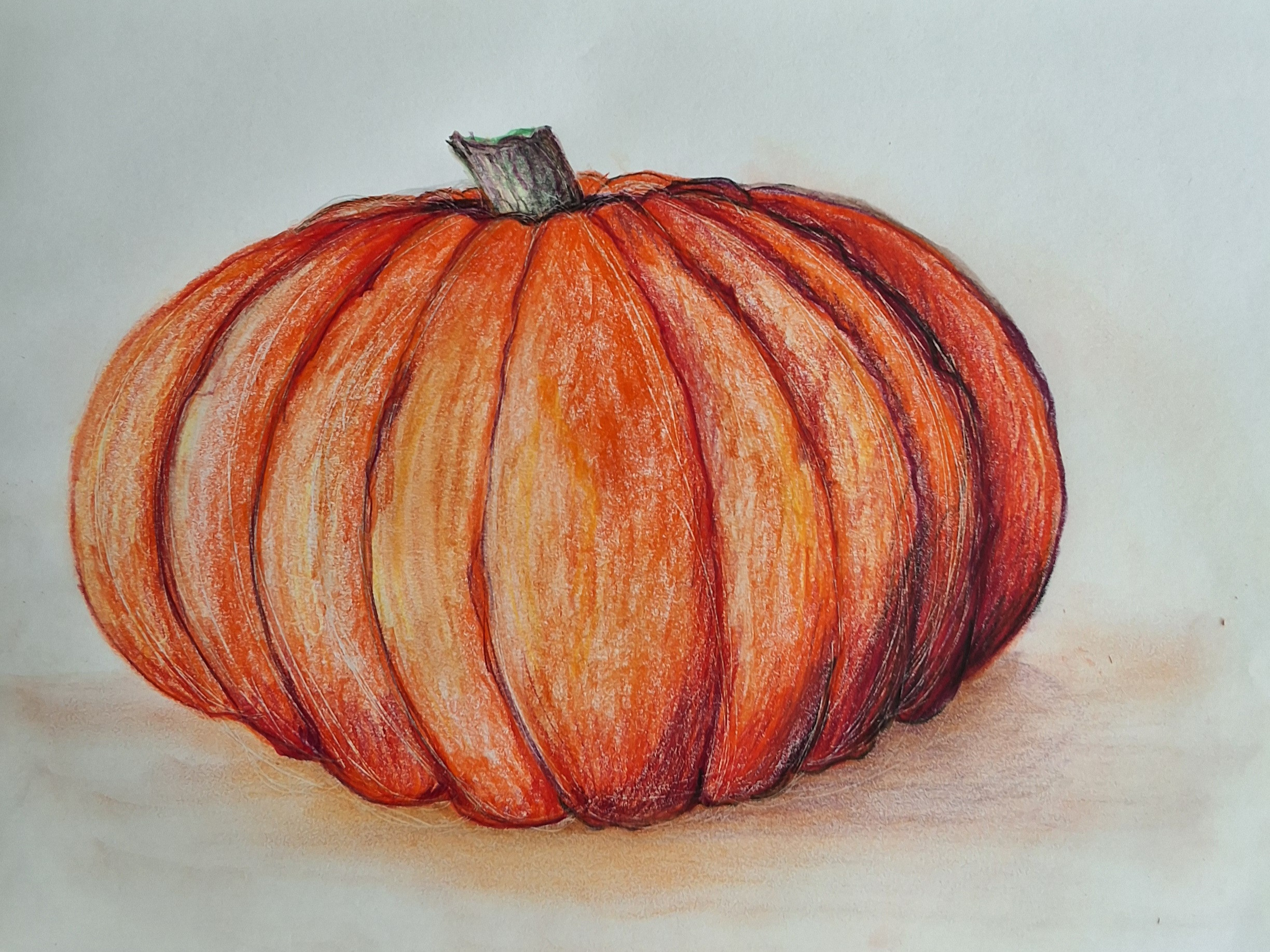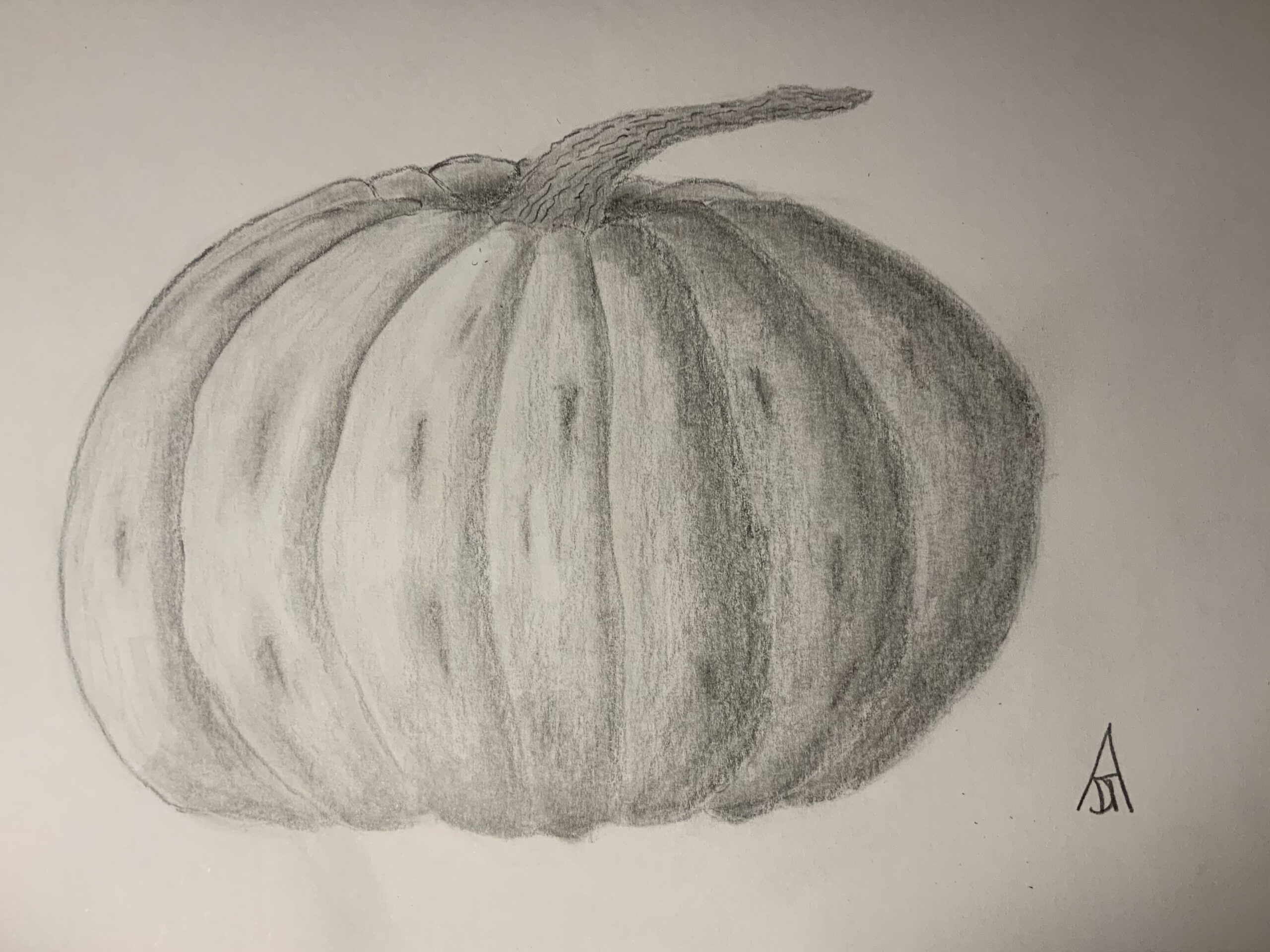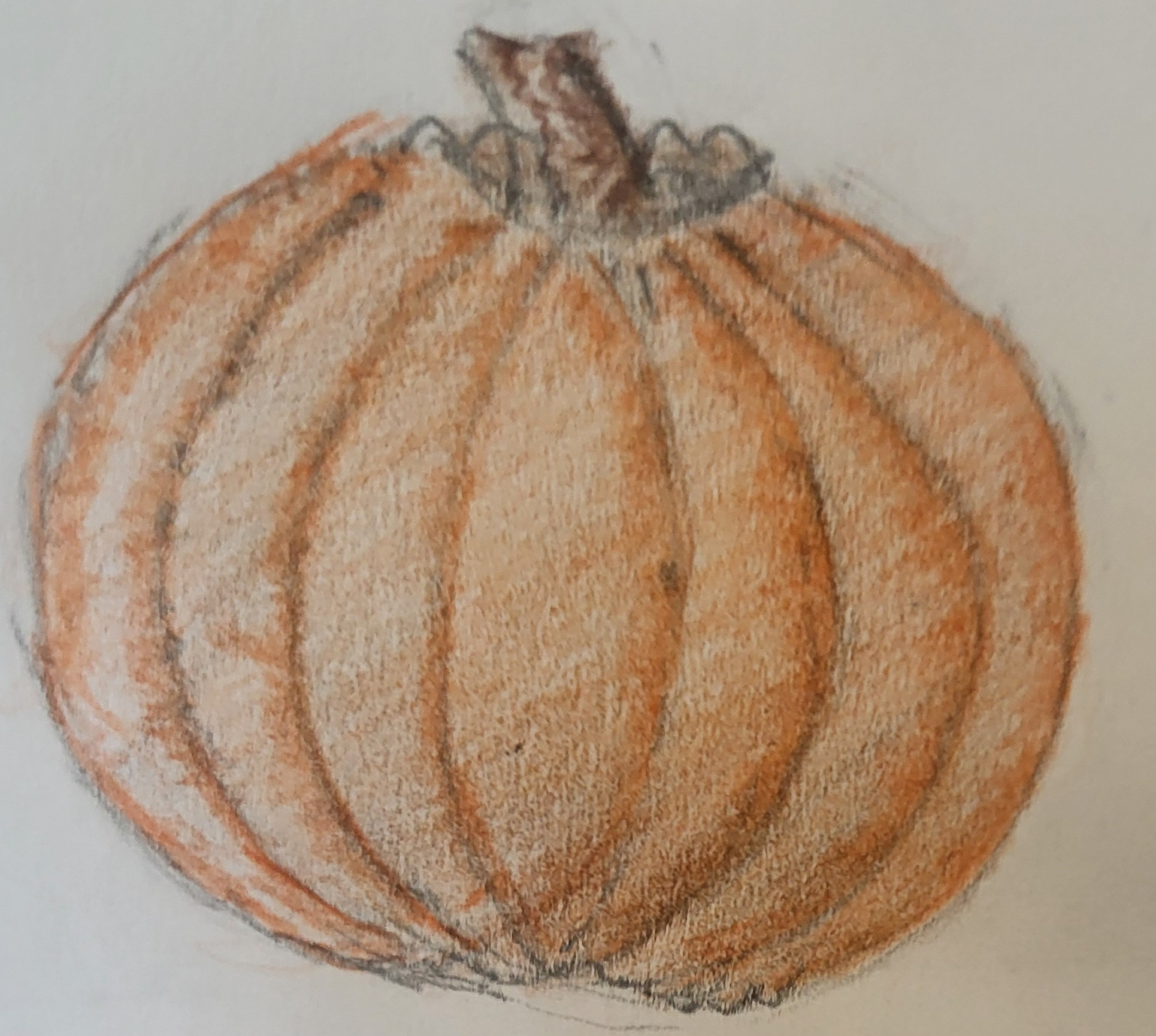 Hi Anuja! Am I correct that the top is your doodle and the bottom is your final sketch? If so, I have to tell you that I love seeing the two together-I particularly love the way you captured the lighting and shadowing on your pumpkin! Nice work!