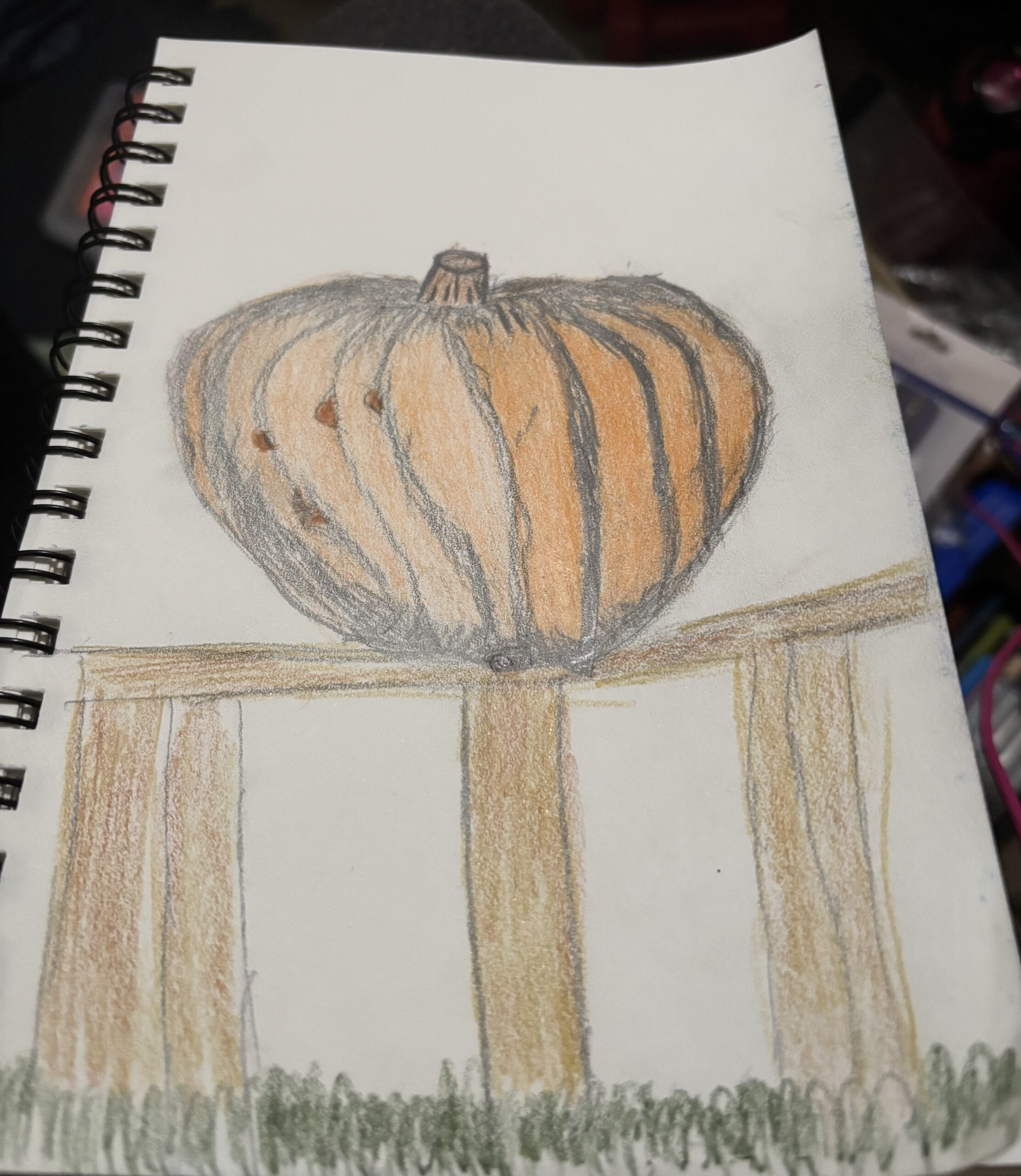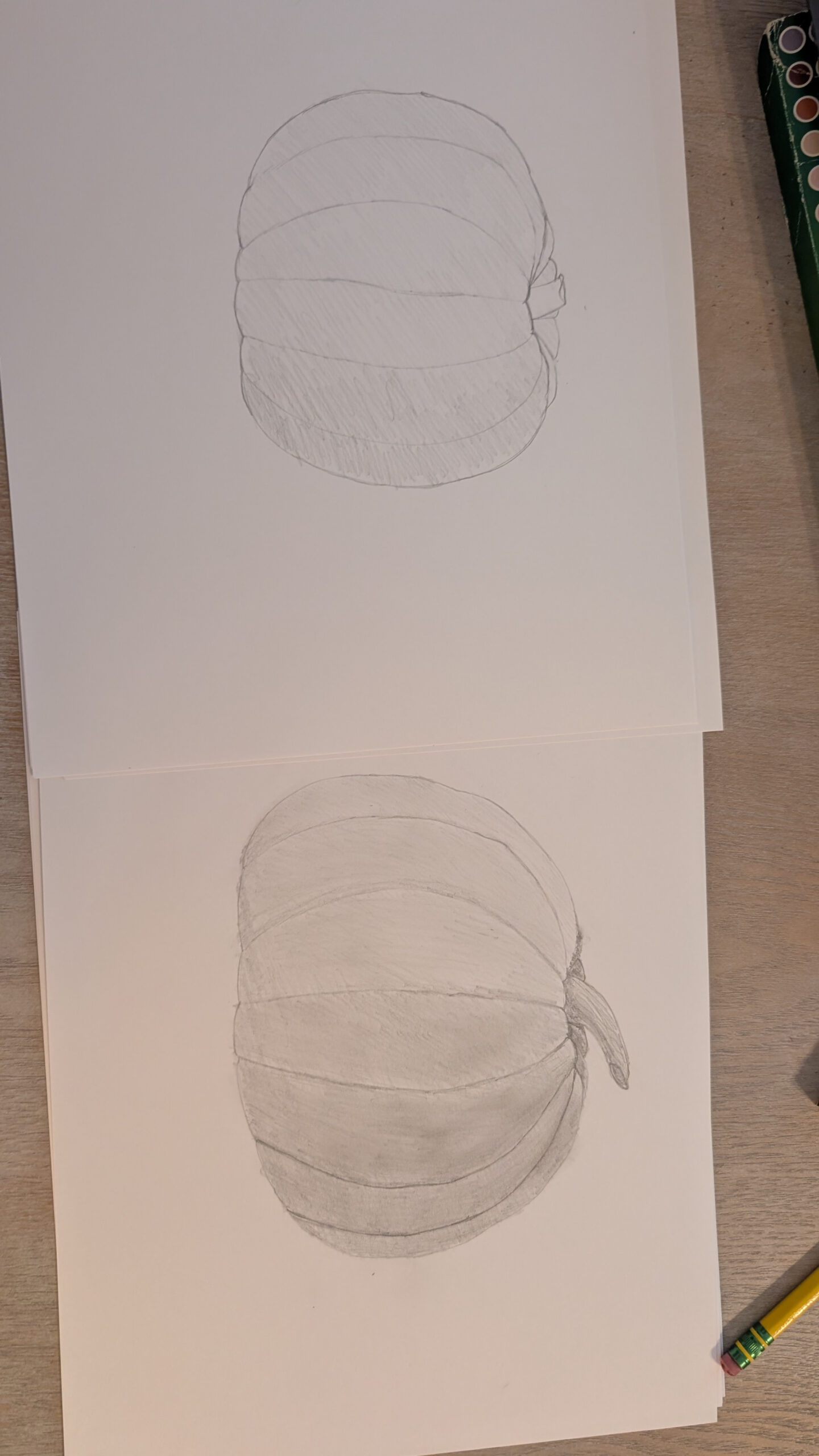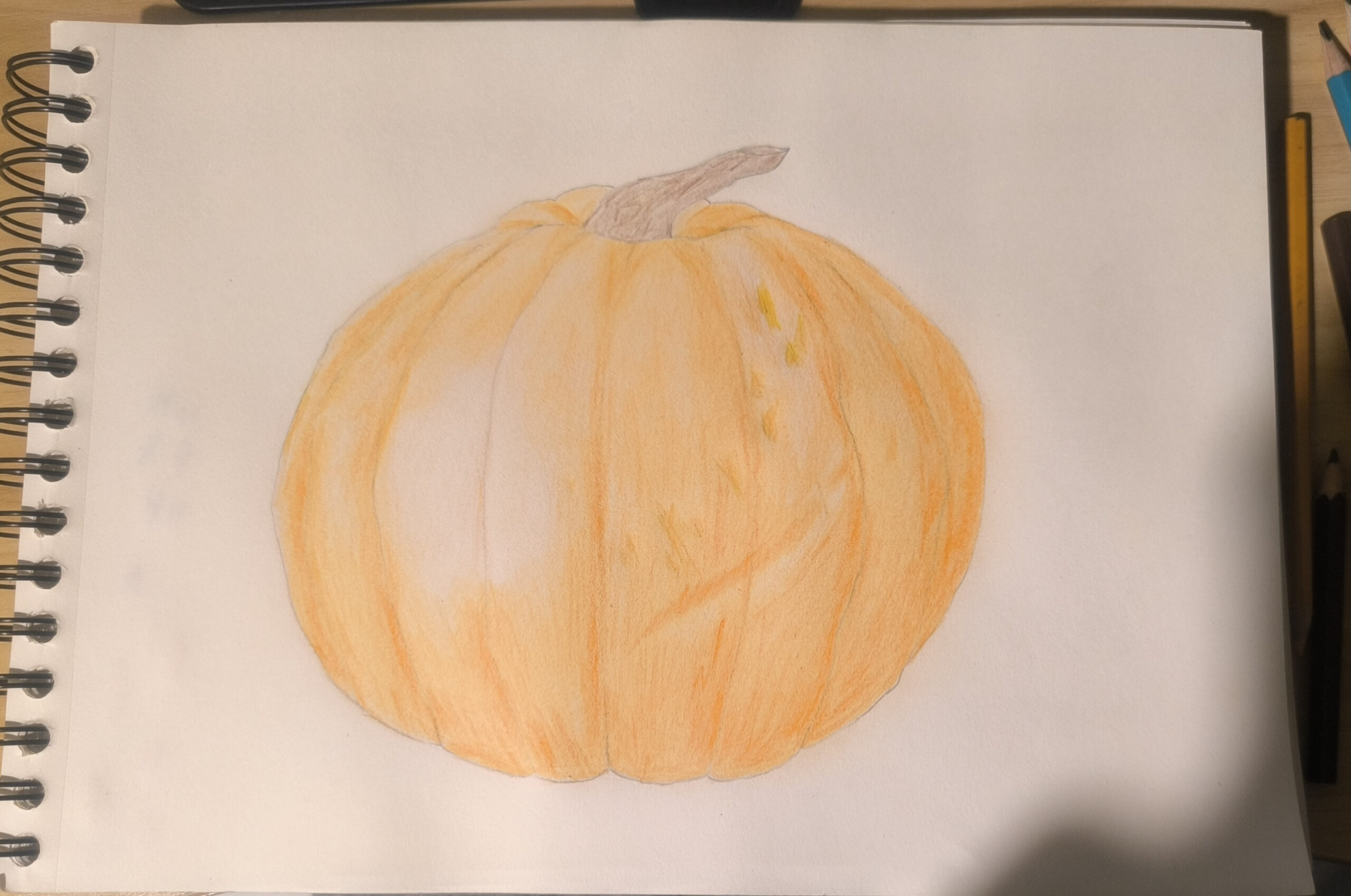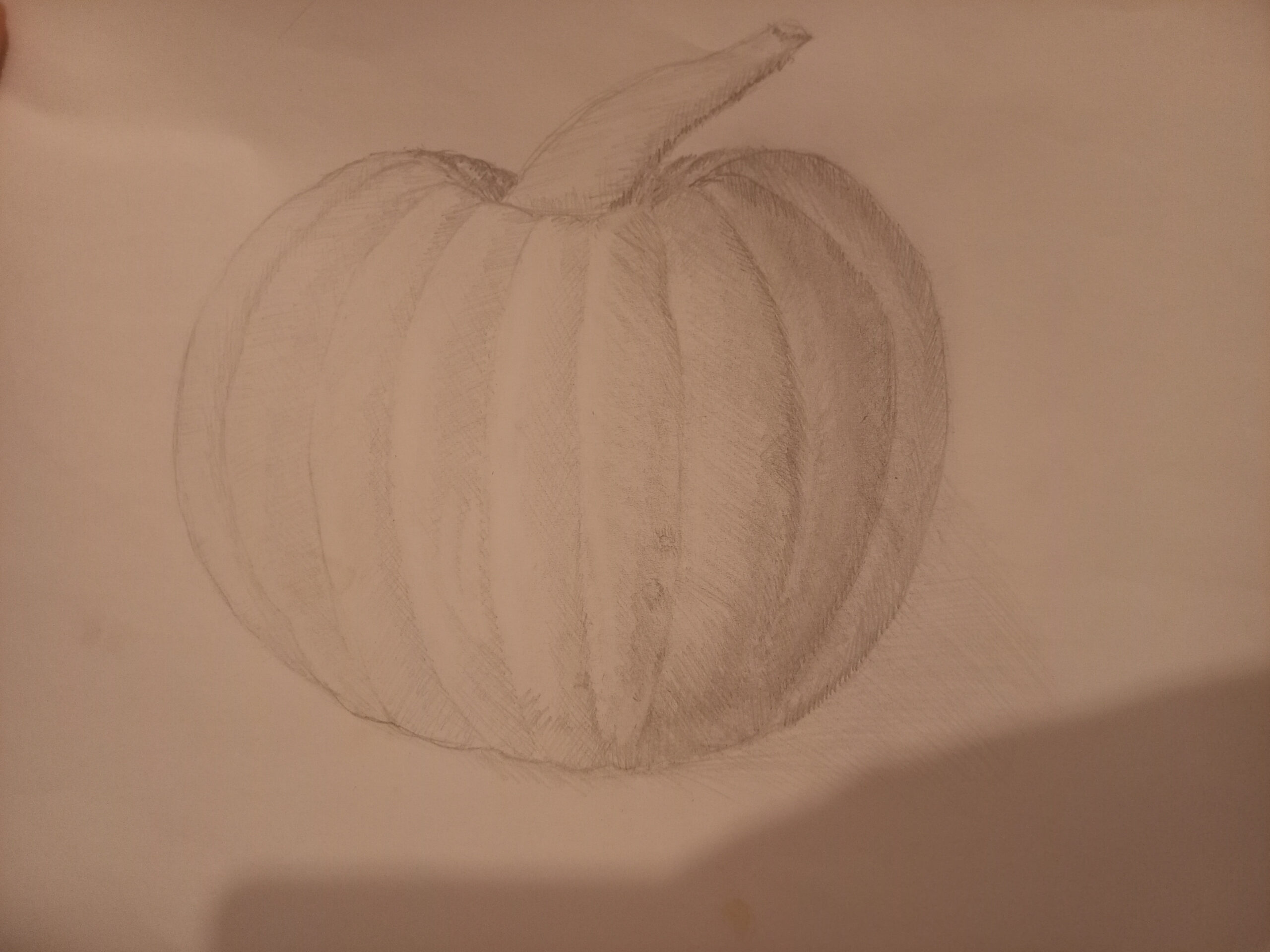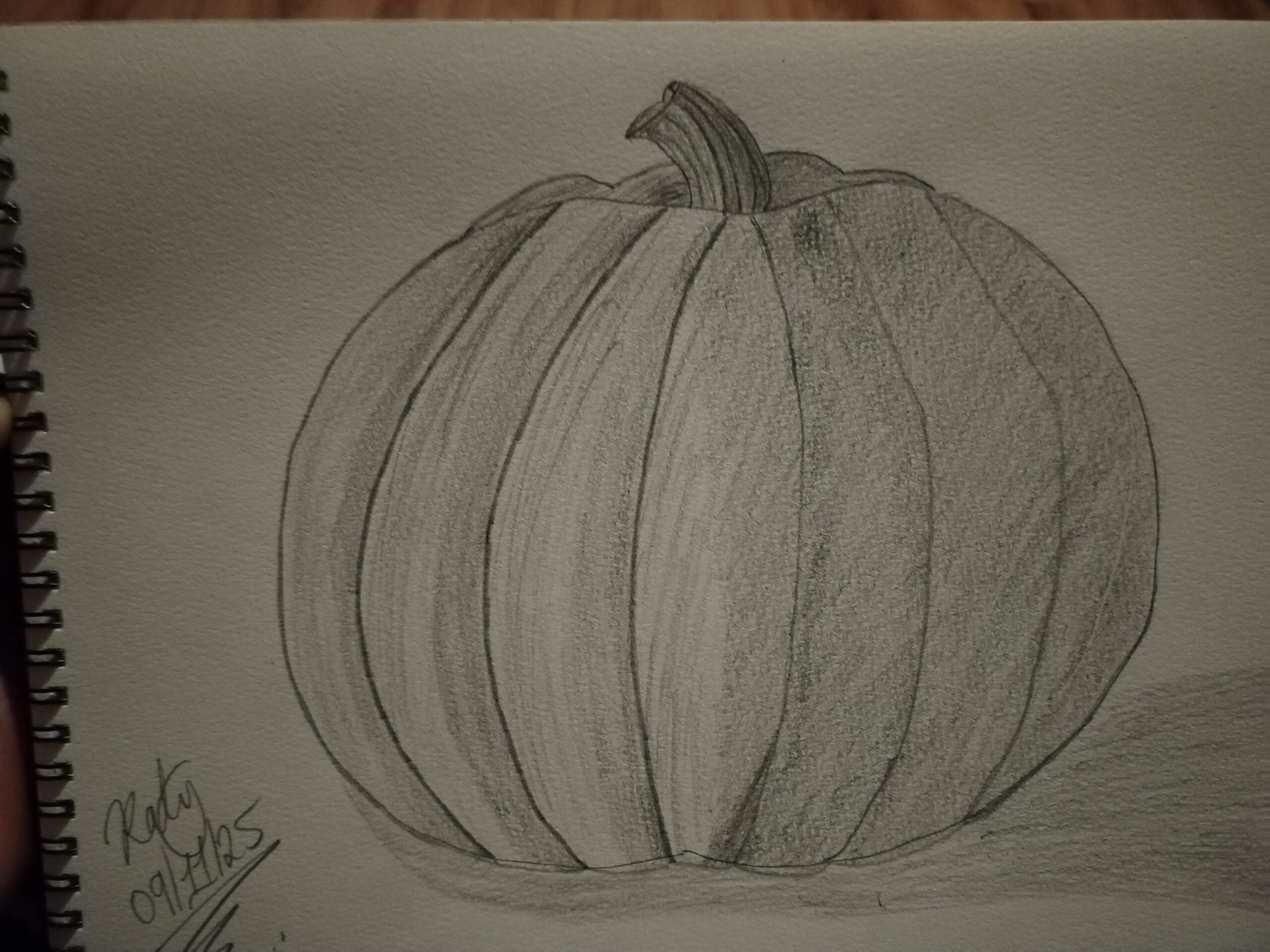Hi Anuja! Am I correct that the top is your doodle and the bottom is your final sketch? If so, I have to tell you that I love seeing the two together-I particularly love the way you captured the lighting and shadowing on your pumpkin! Nice work!
