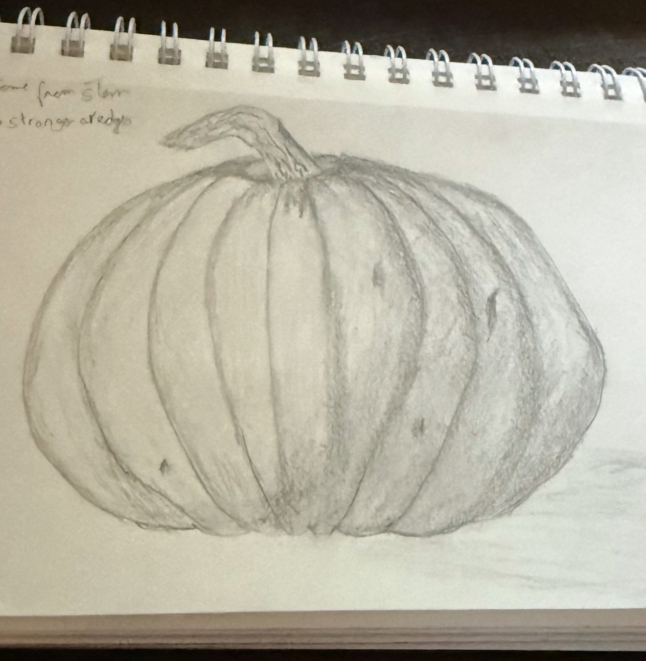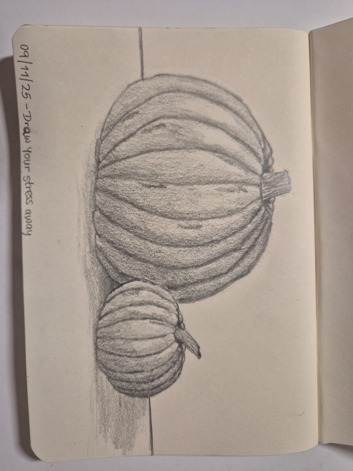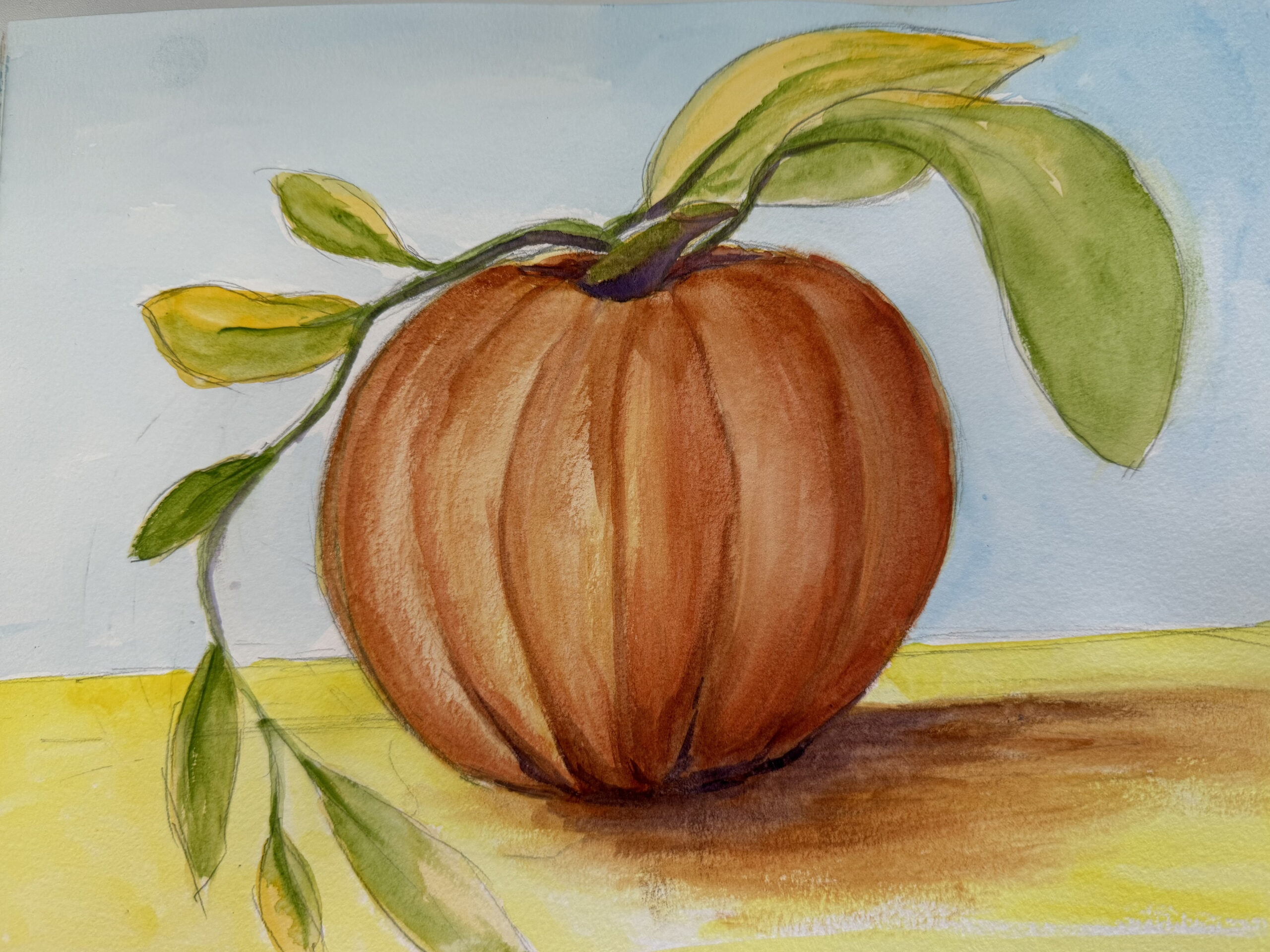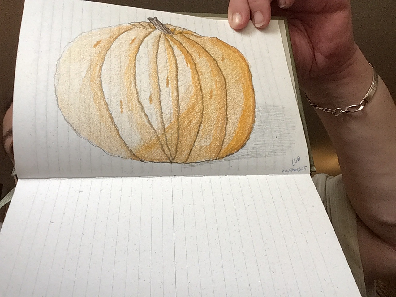 Hi Anuja! Am I correct that the top is your doodle and the bottom is your final sketch? If so, I have to tell you that I love seeing the two together-I particularly love the way you captured the lighting and shadowing on your pumpkin! Nice work!