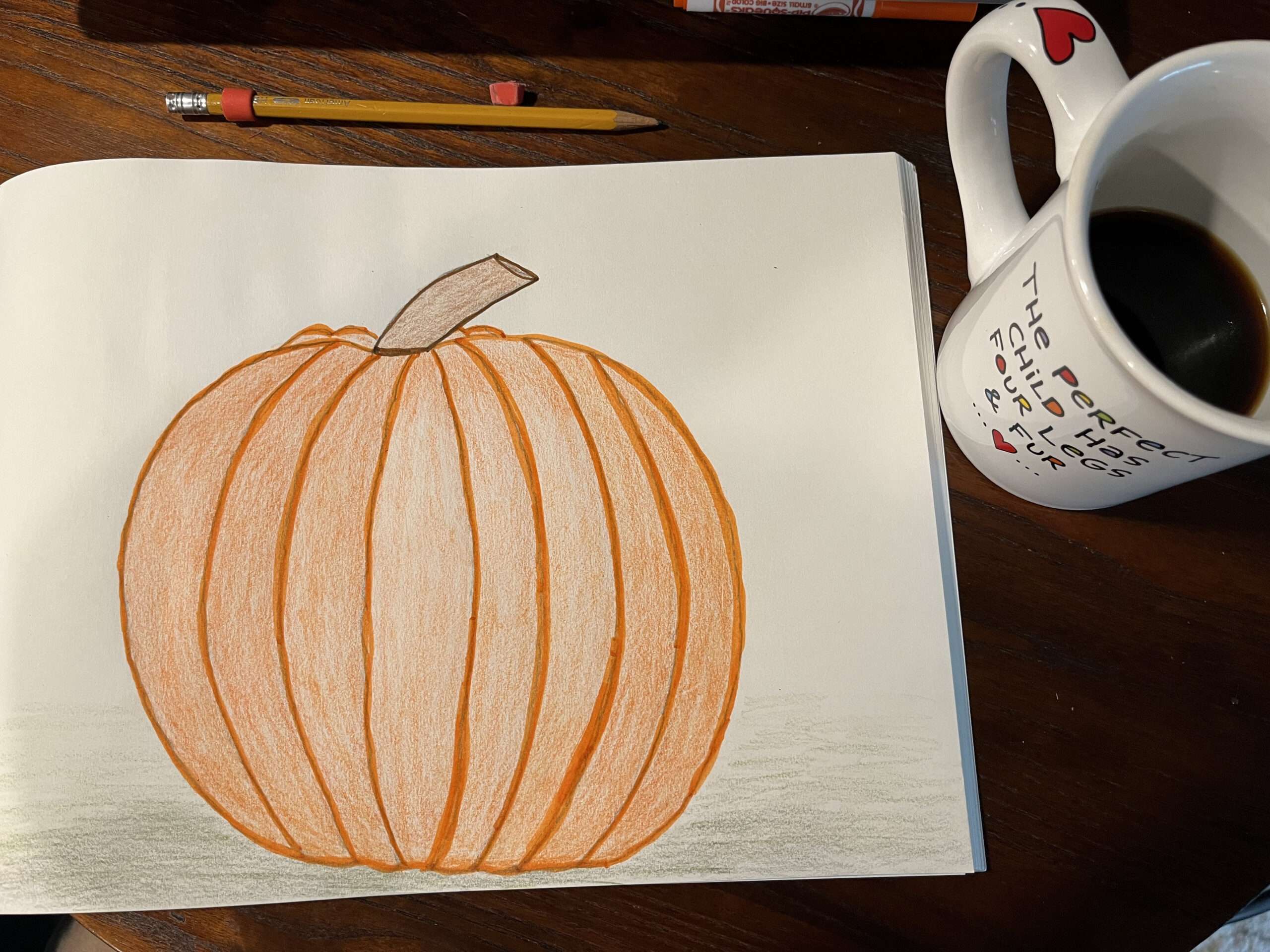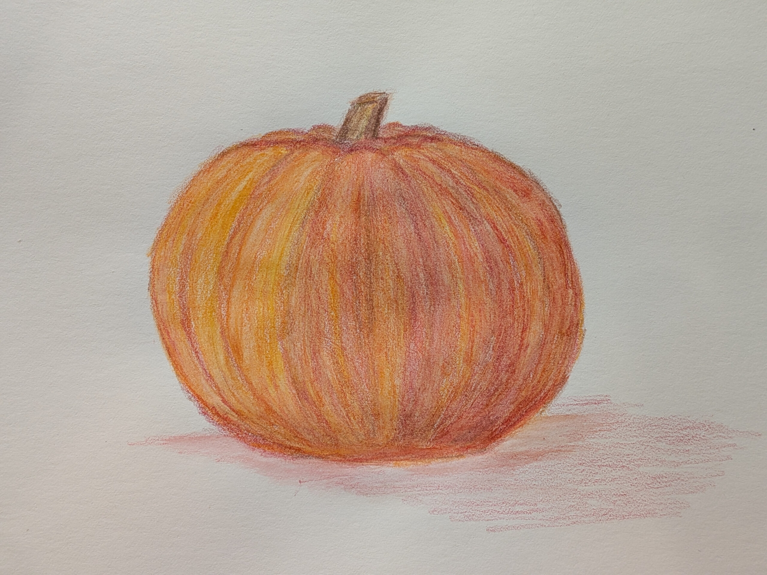 I only had one orange pencil crayon, so I worked just that. It turned out pretty good. The instructions to do the colouring in l layers and holding the pencil towards the bottom to keep things even helped a lot!