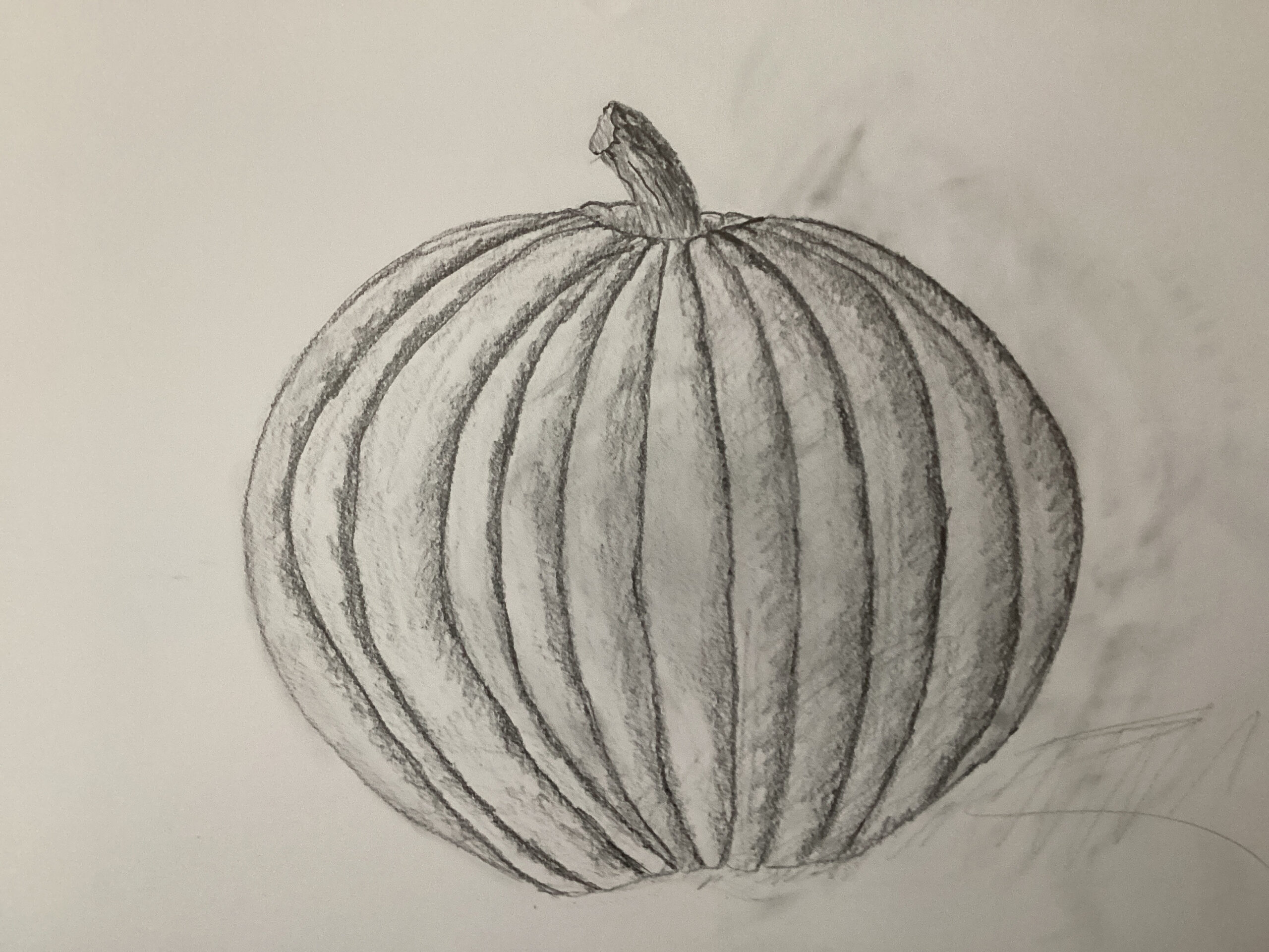 We are so happy you joined us today, Tara! Great work with your pumpkin. I have a question for you-your shading is incredible (this is something I struggle with) and I notice you have a few lighter areas on the left sides of a few of the pumpkin ribs…did you create these through shading for did you use an eraser to add highlights? This is me trying to learn new strategies 😃