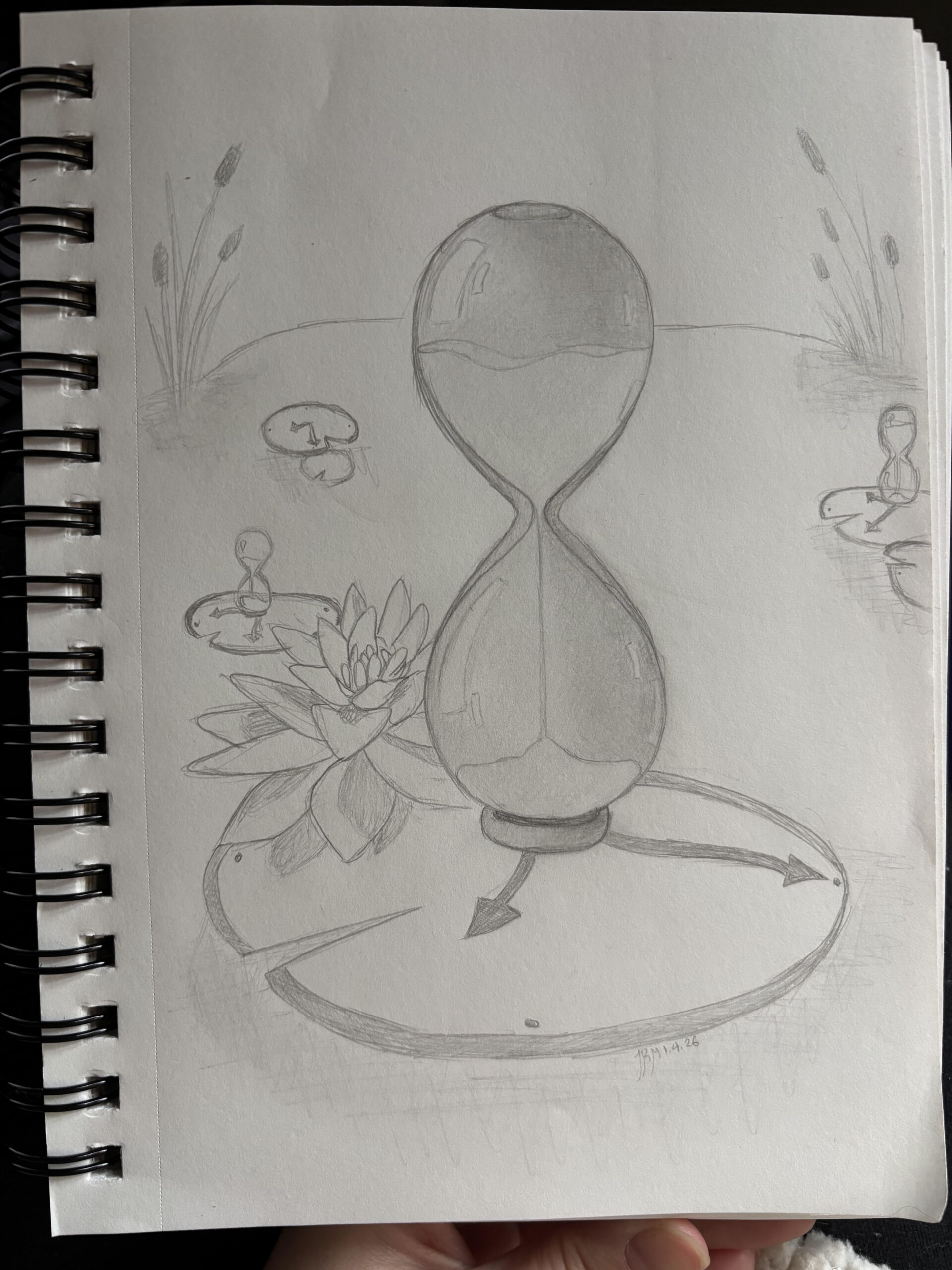 Happy you enjoyed it, Jessica. Your sketch feels imaginative, and I really like how you let the scene grow beyond the hourglass itself. The extra elements you added around the hourglass make it feel like part of a story rather than just an object. So…is there a story!?