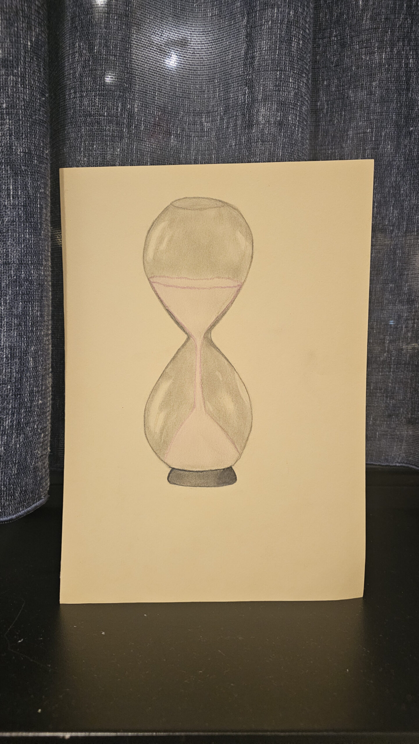 We are really glad you were part of today’s session, Esthelle! Your hourglass feels so soft and calm, the gentle shading gives it a peaceful and reflective presence! Nice work!