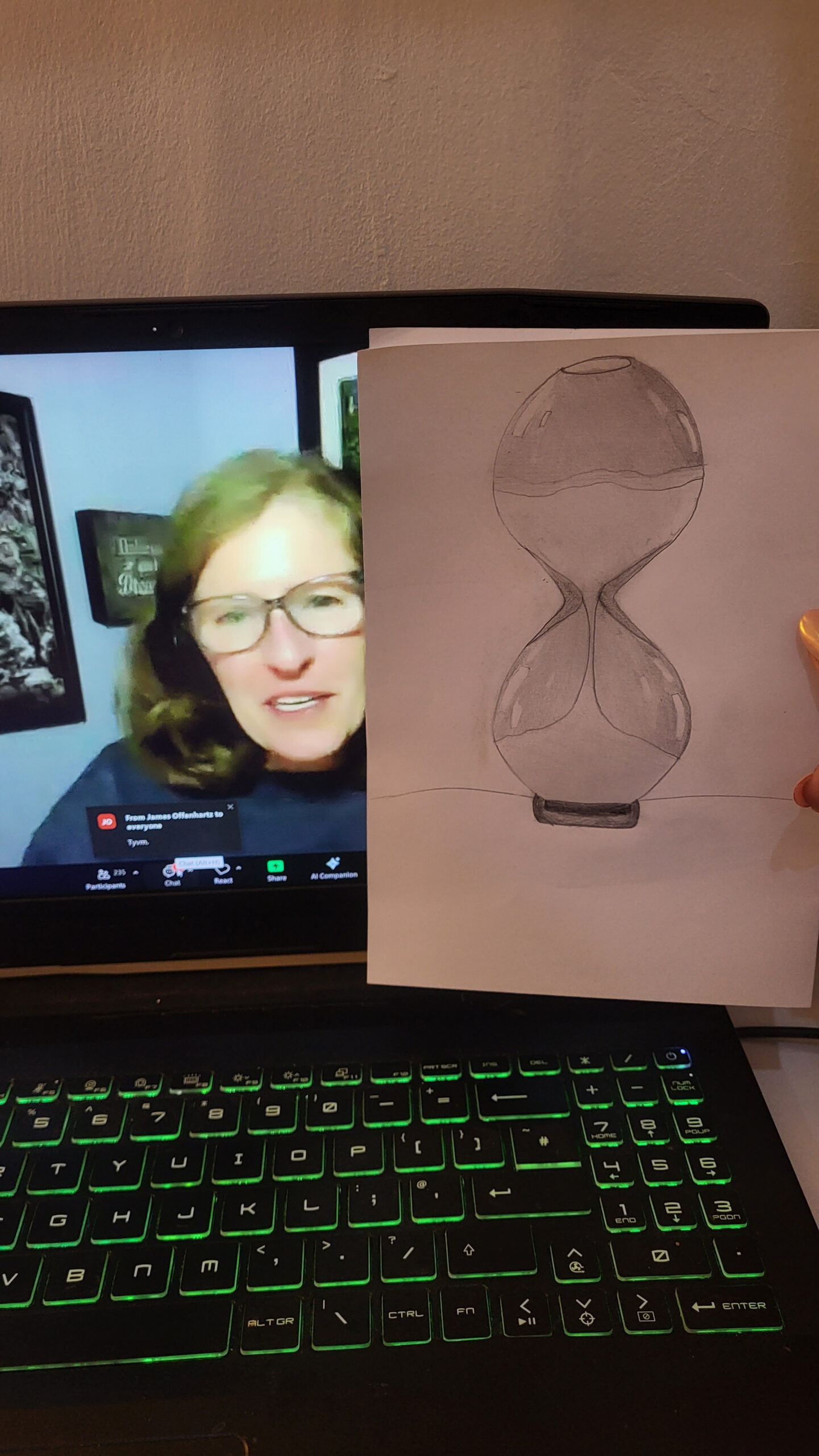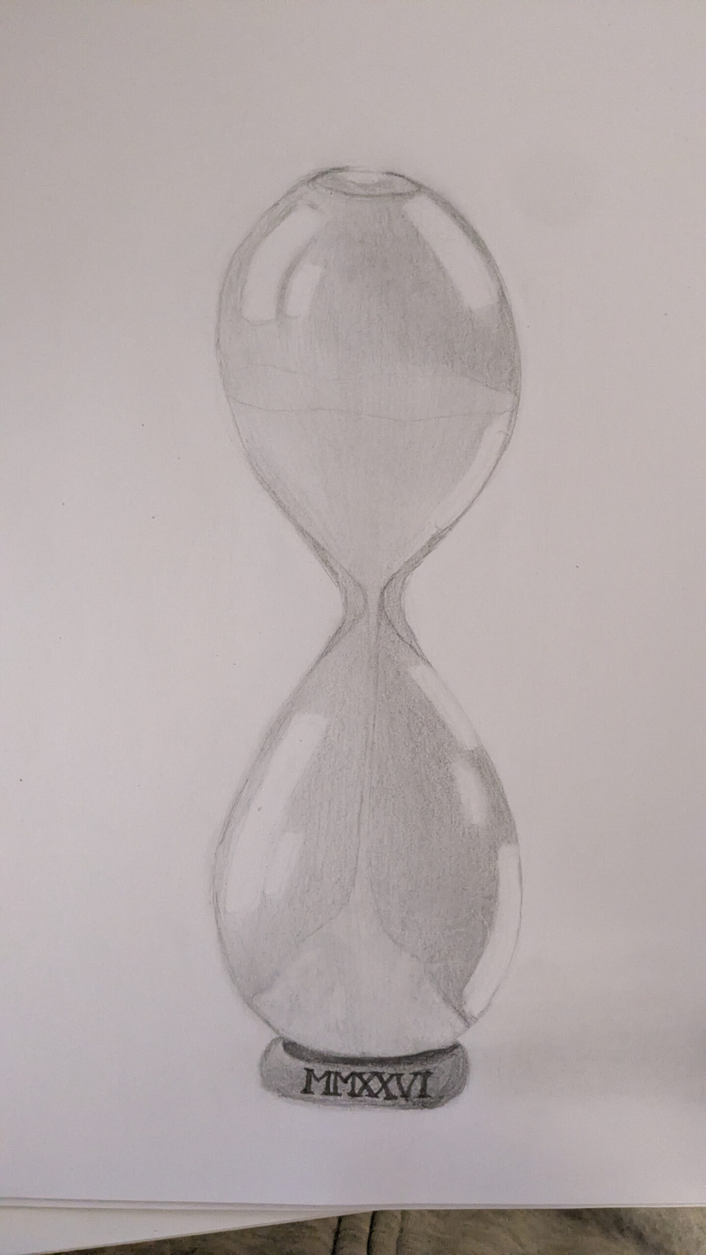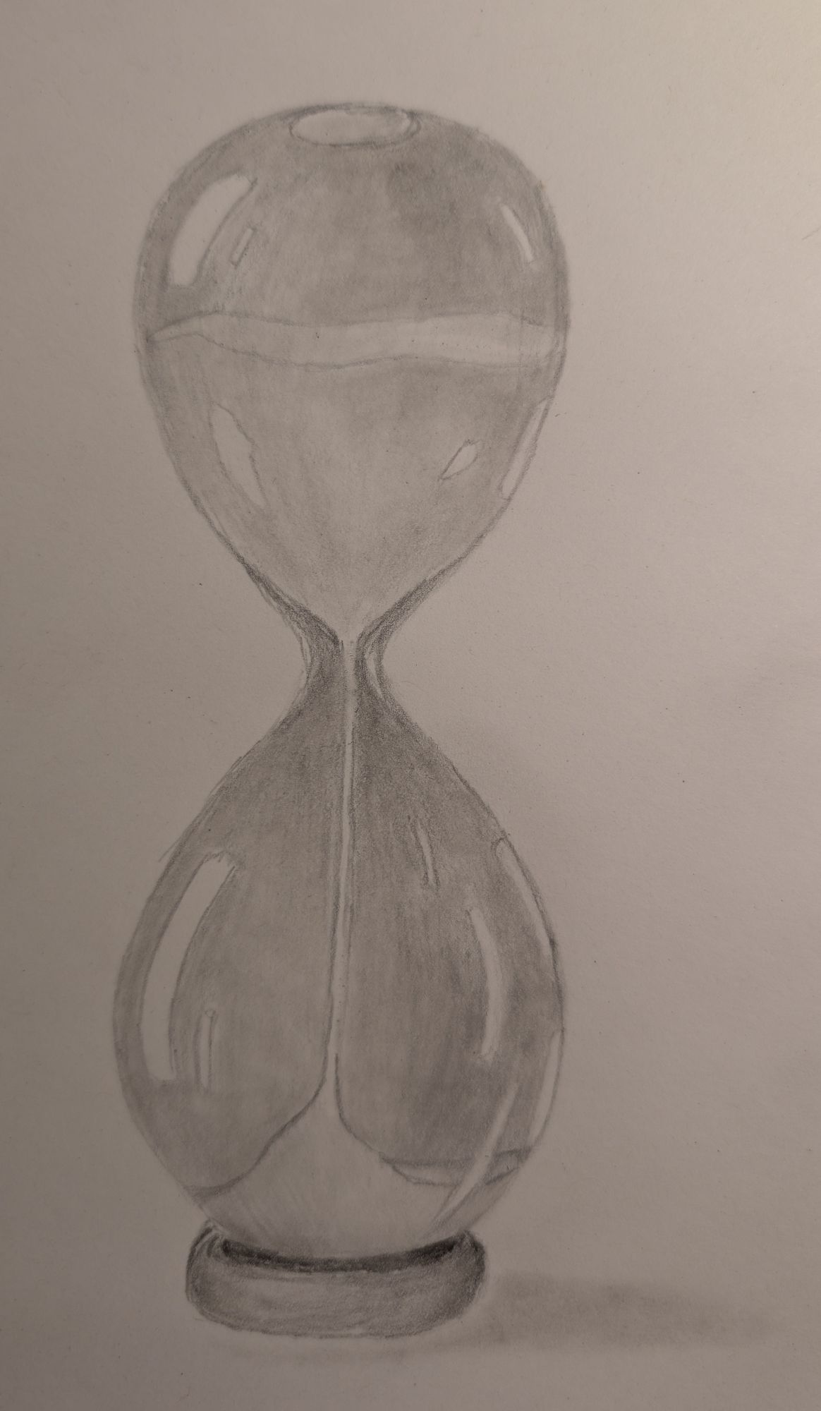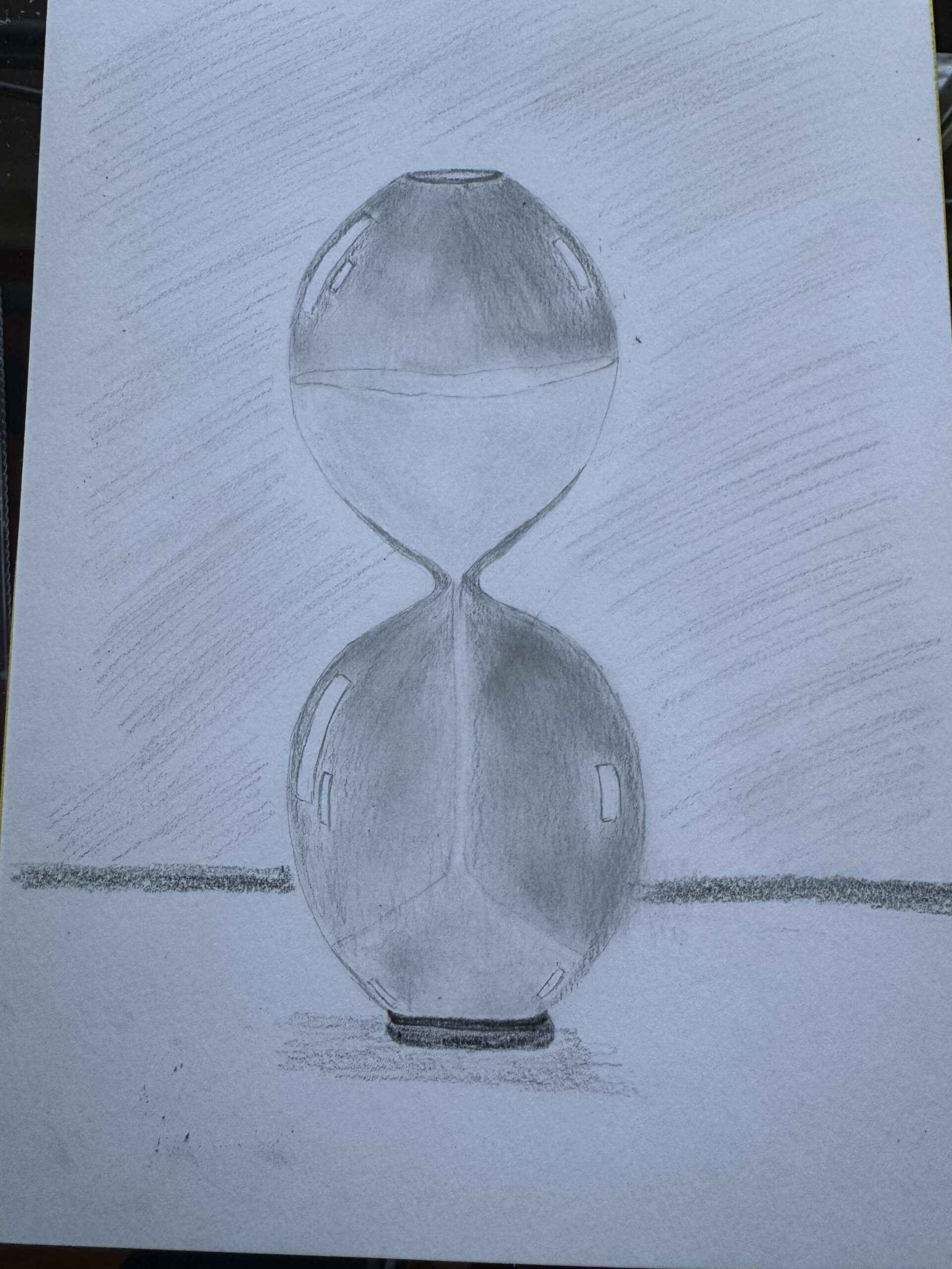 We are so happy you liked the session, Chris! I love your hourglass and how the sand settles in the bottom globe.I also think how you shaded the base really grounds the drawing and adds such depth to your sketch. Nice work!