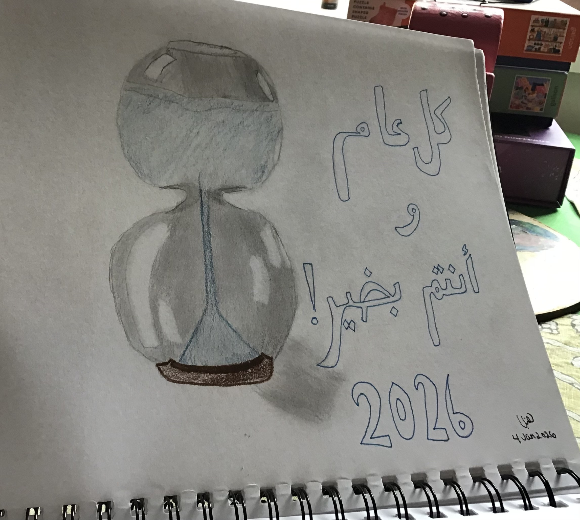 So nice to see this orientation of your sketch, Dana. You really did a lovely job on your sketch and let your personality come through. The blue adds such a nice touch, and the notes make it feel like a little time capsule for 2026