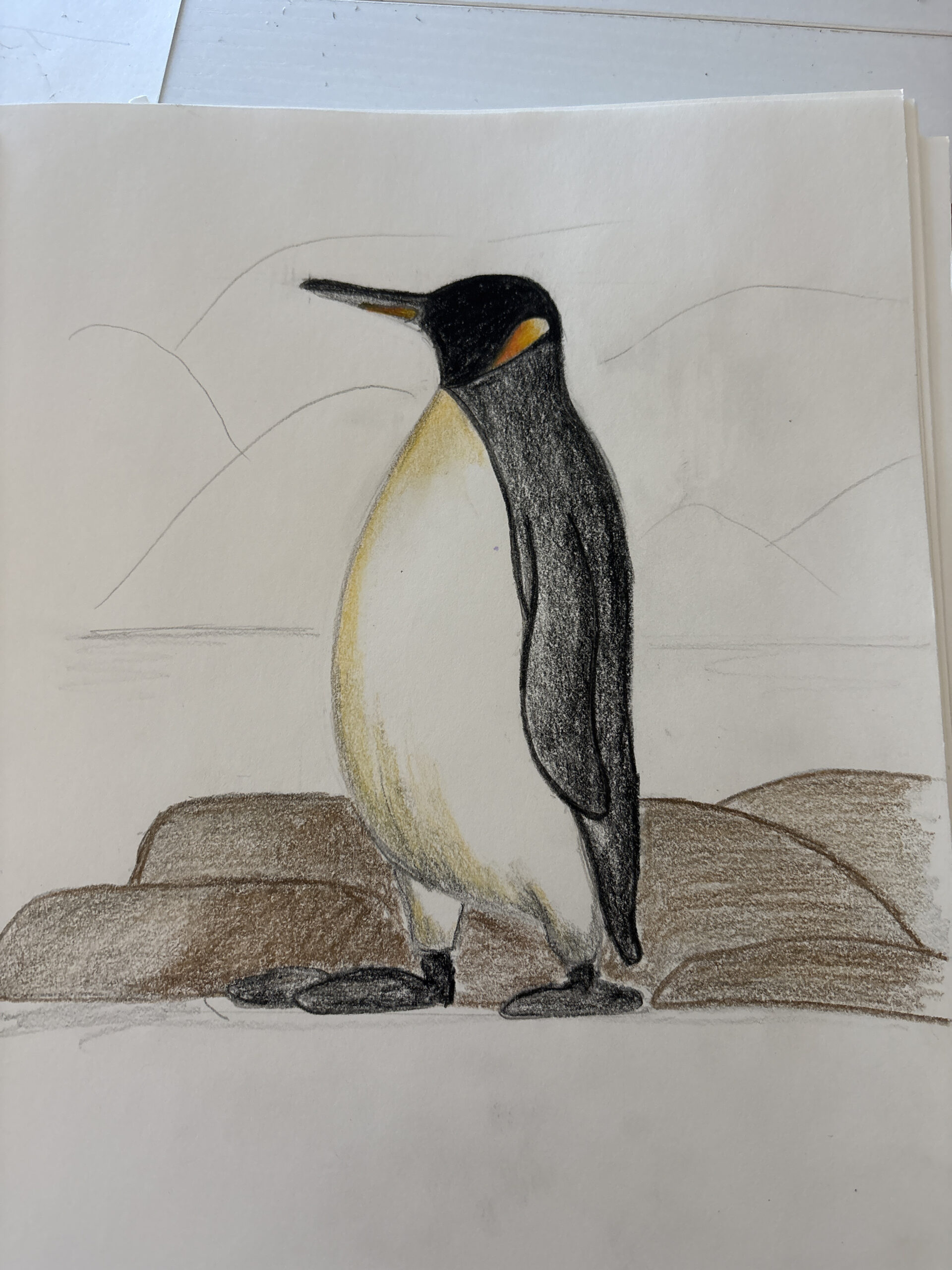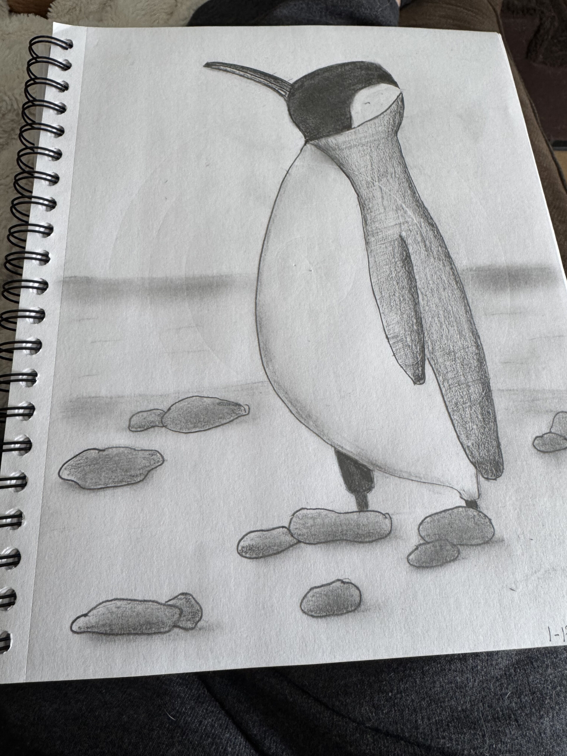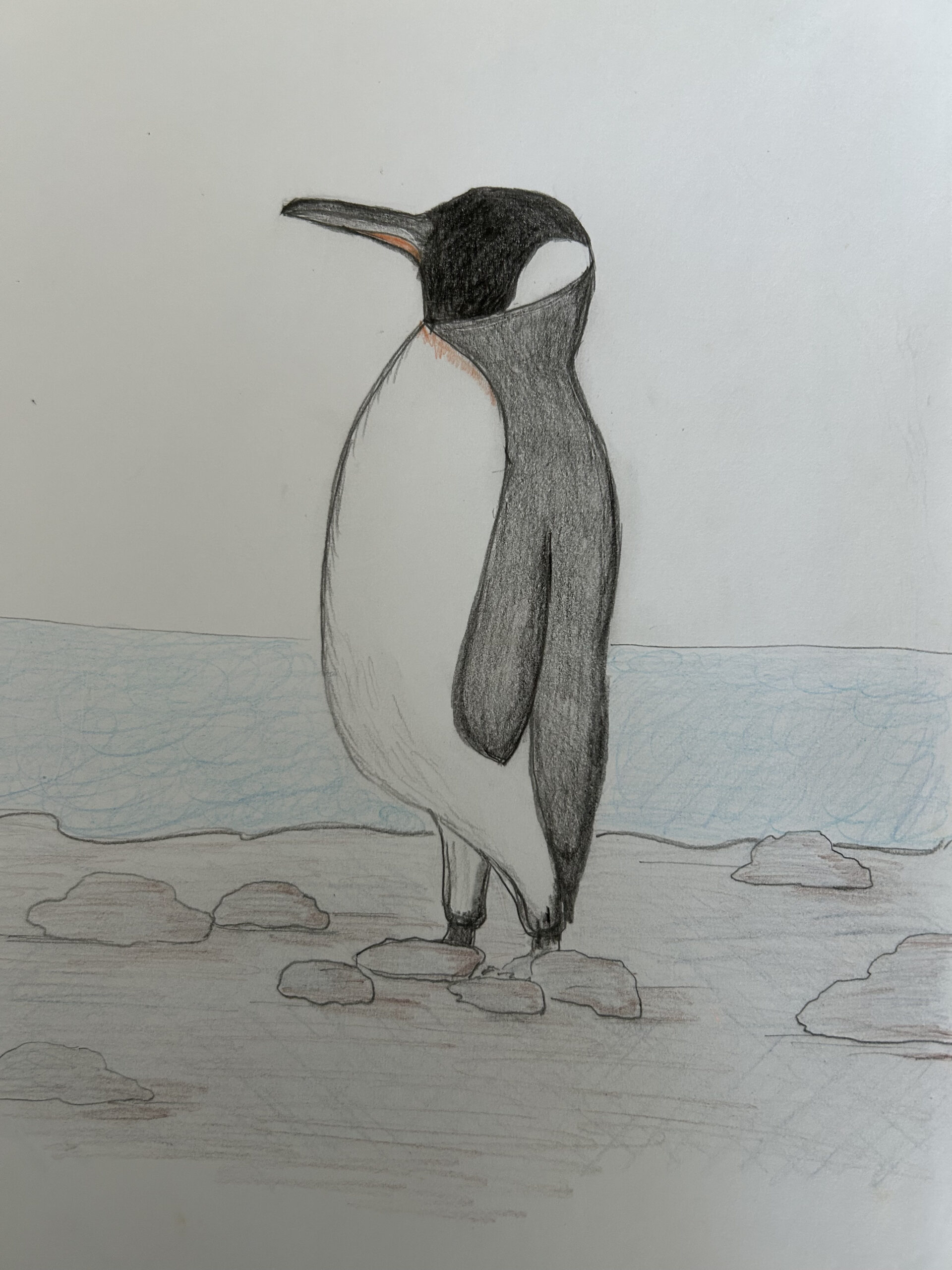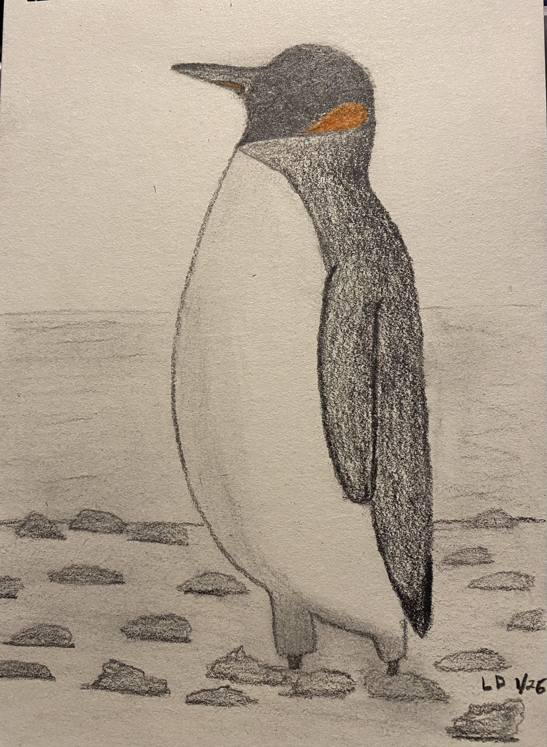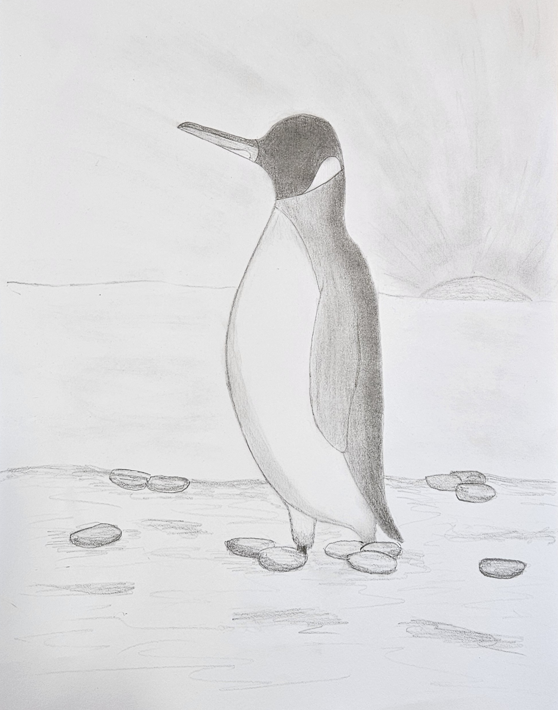 Jenny, I’m so glad you had fun with it. Your penguin feels really balanced and well proportioned, and I love how you handled the shading on the body and wings. The rocks along the ground add a nice sense of depth too. Thank you for drawing with us today.