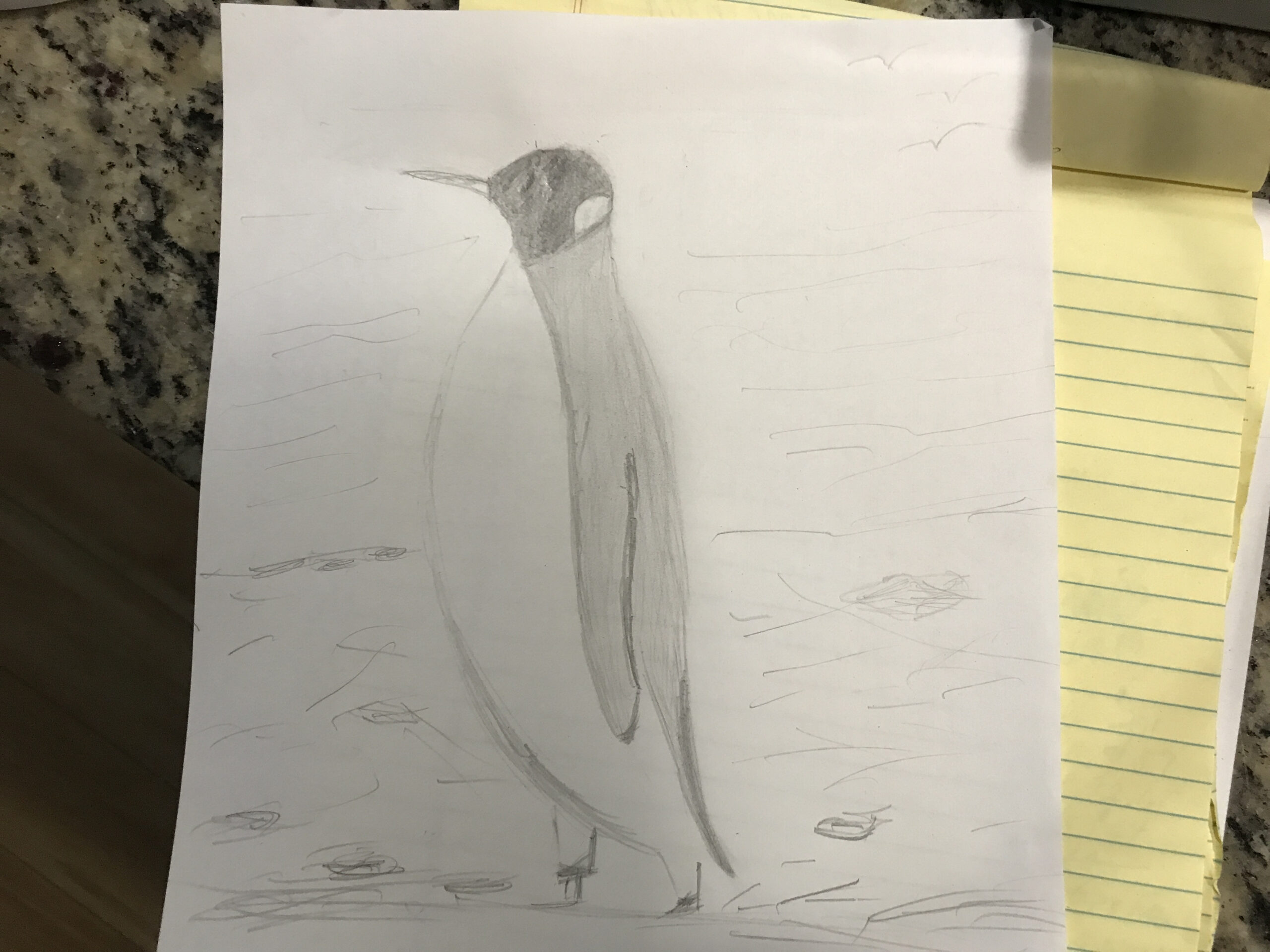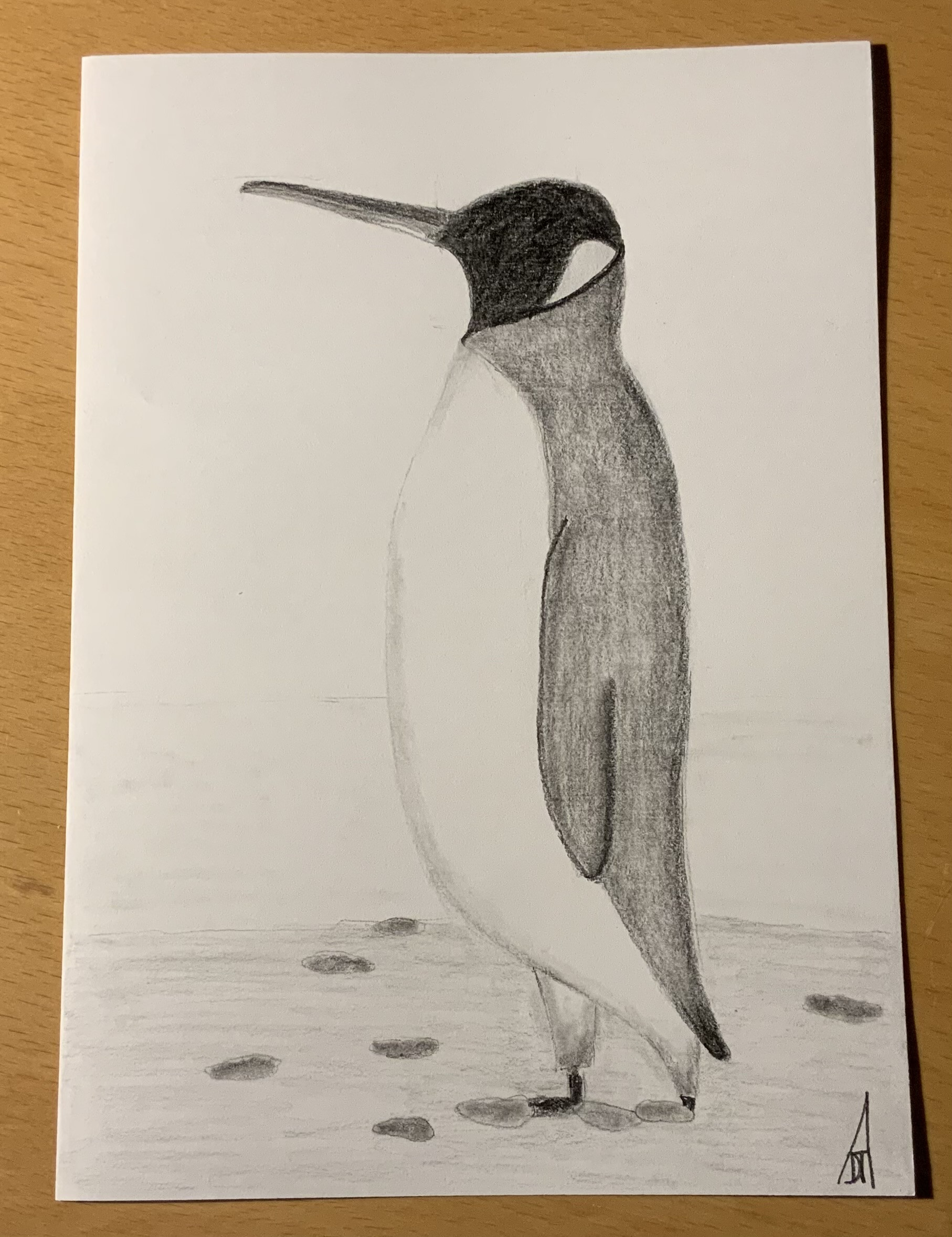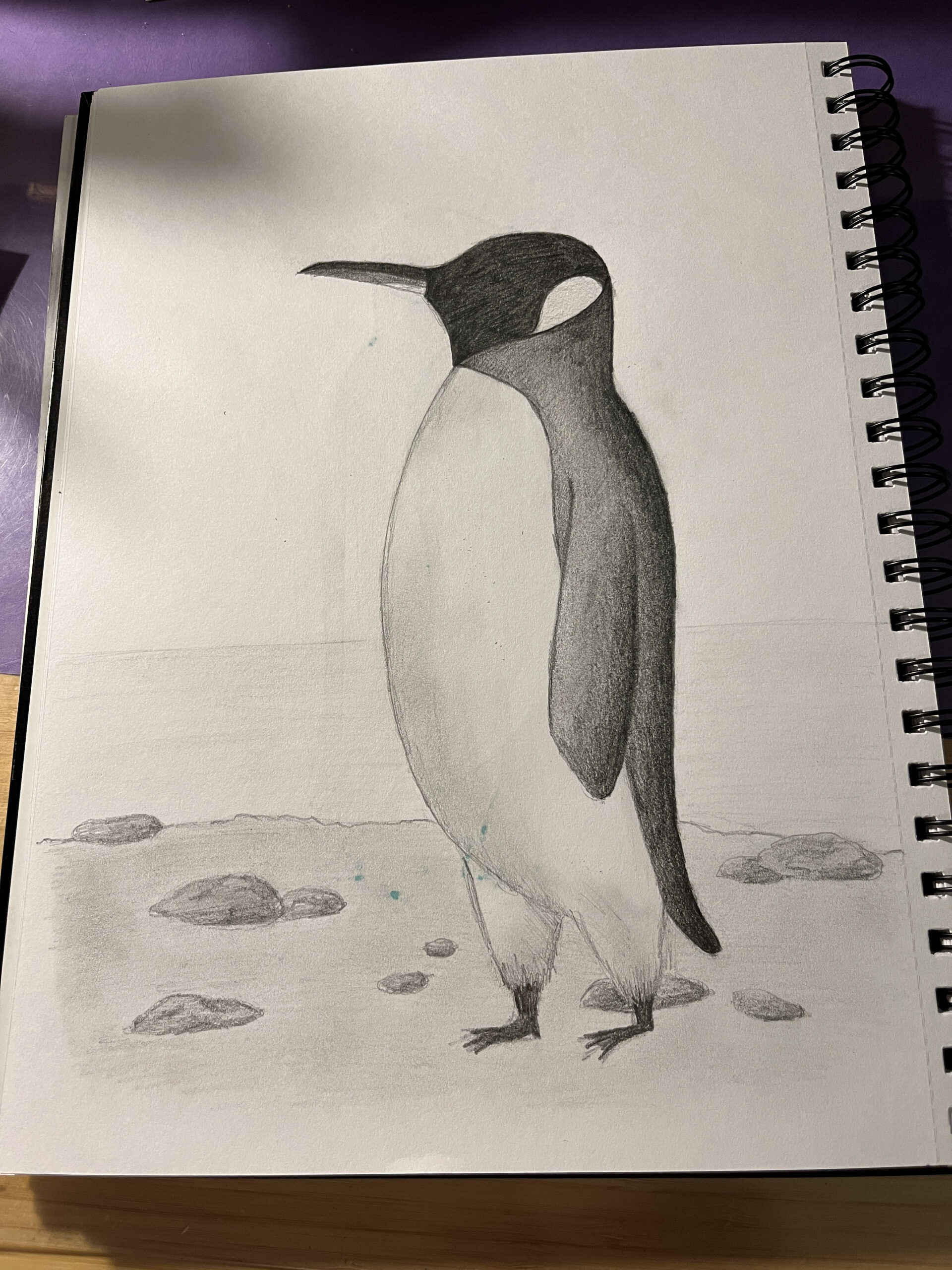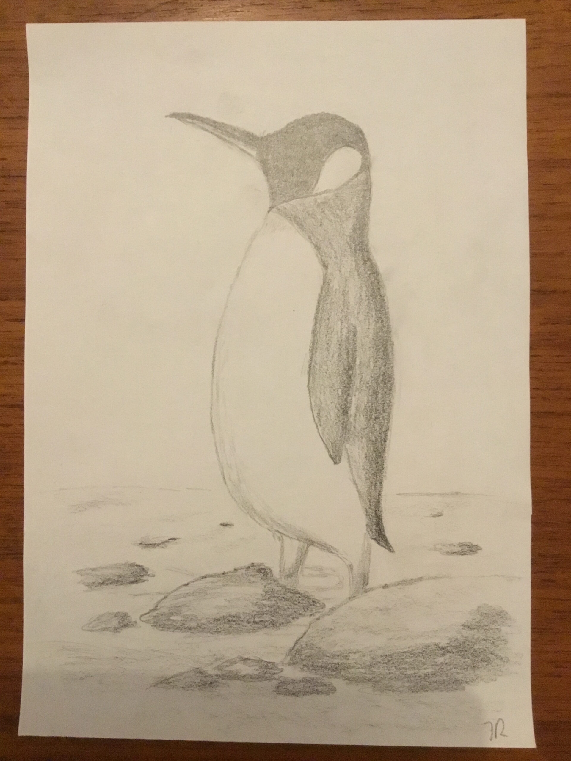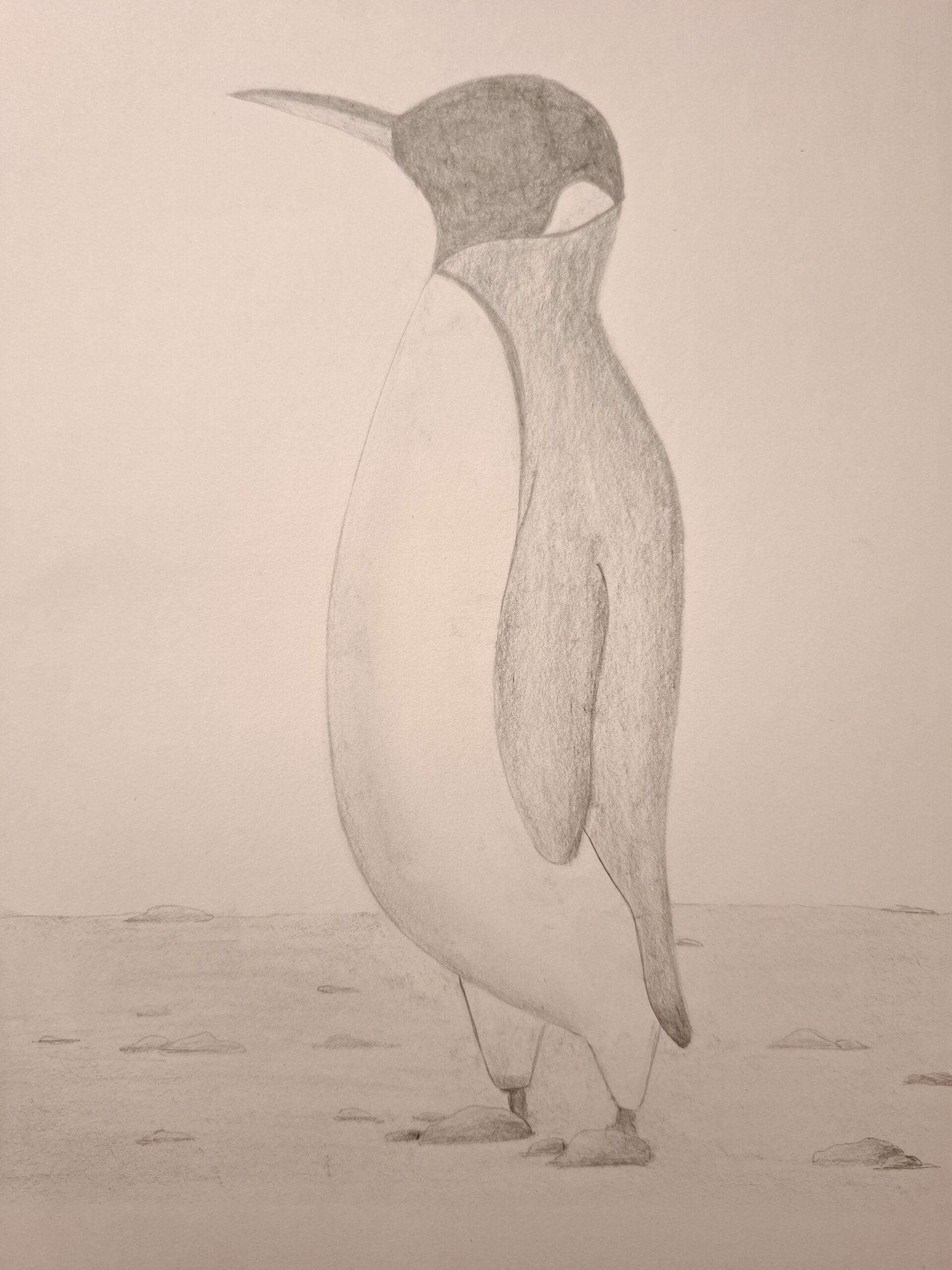 Jenny, I’m so glad you had fun with it. Your penguin feels really balanced and well proportioned, and I love how you handled the shading on the body and wings. The rocks along the ground add a nice sense of depth too. Thank you for drawing with us today.