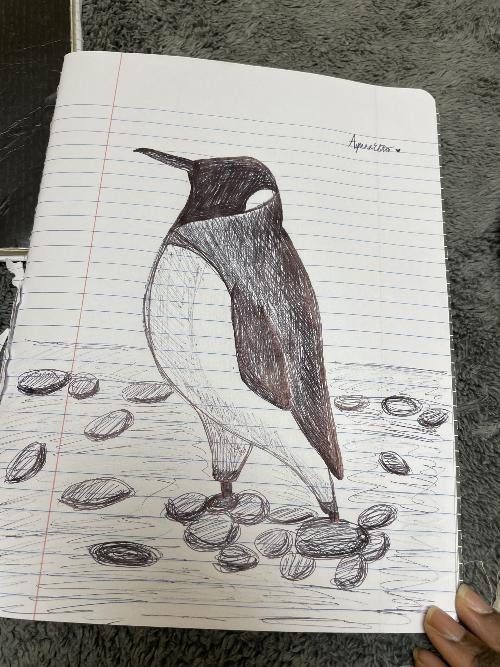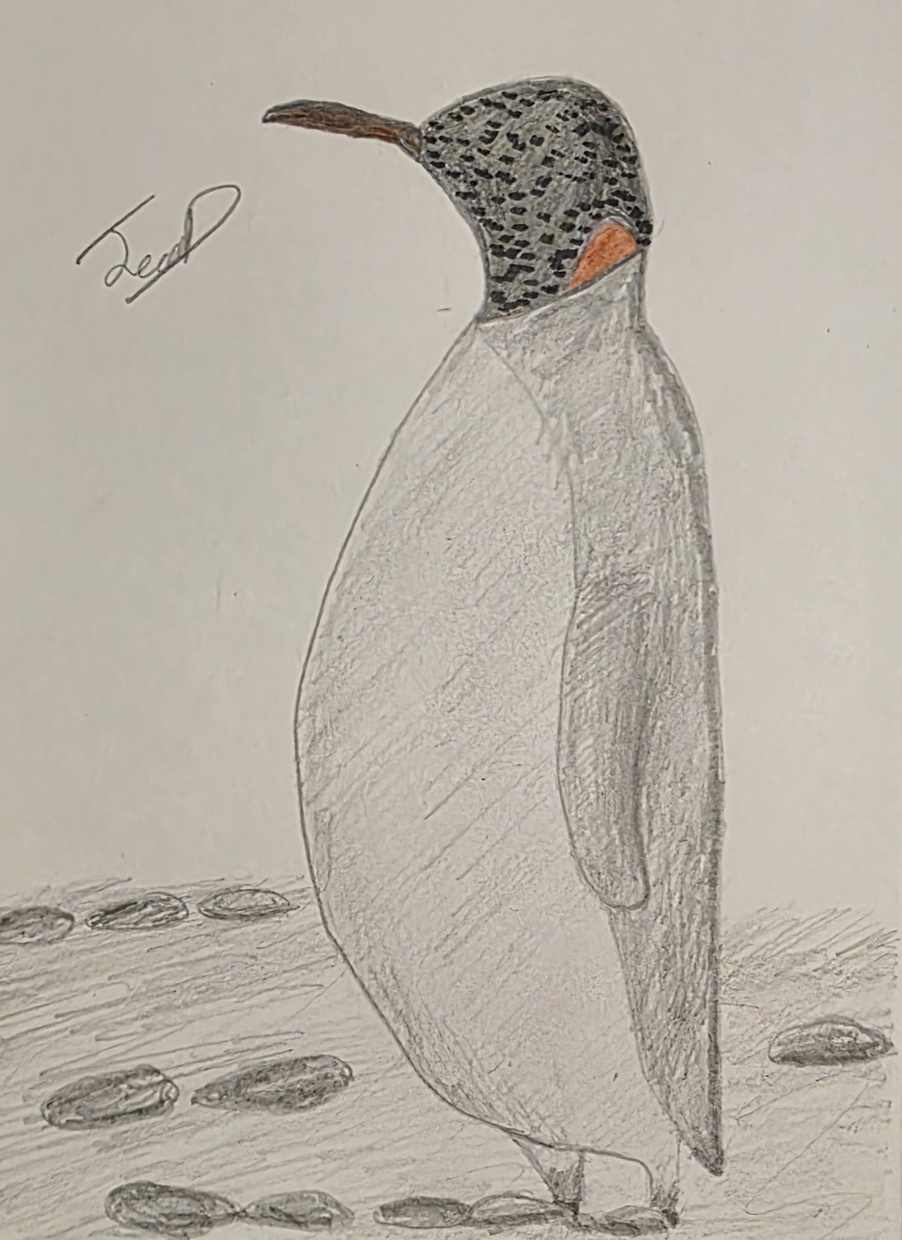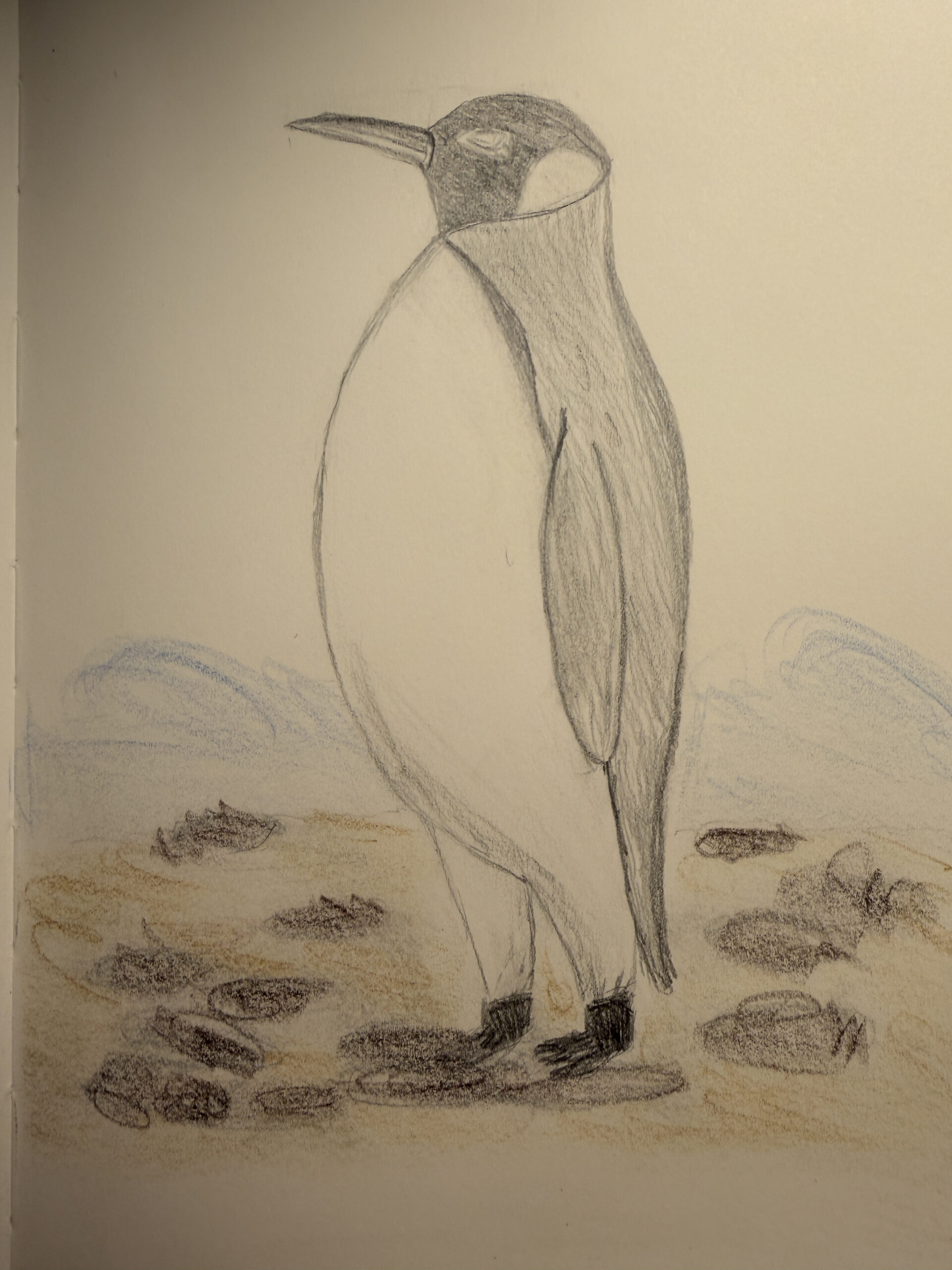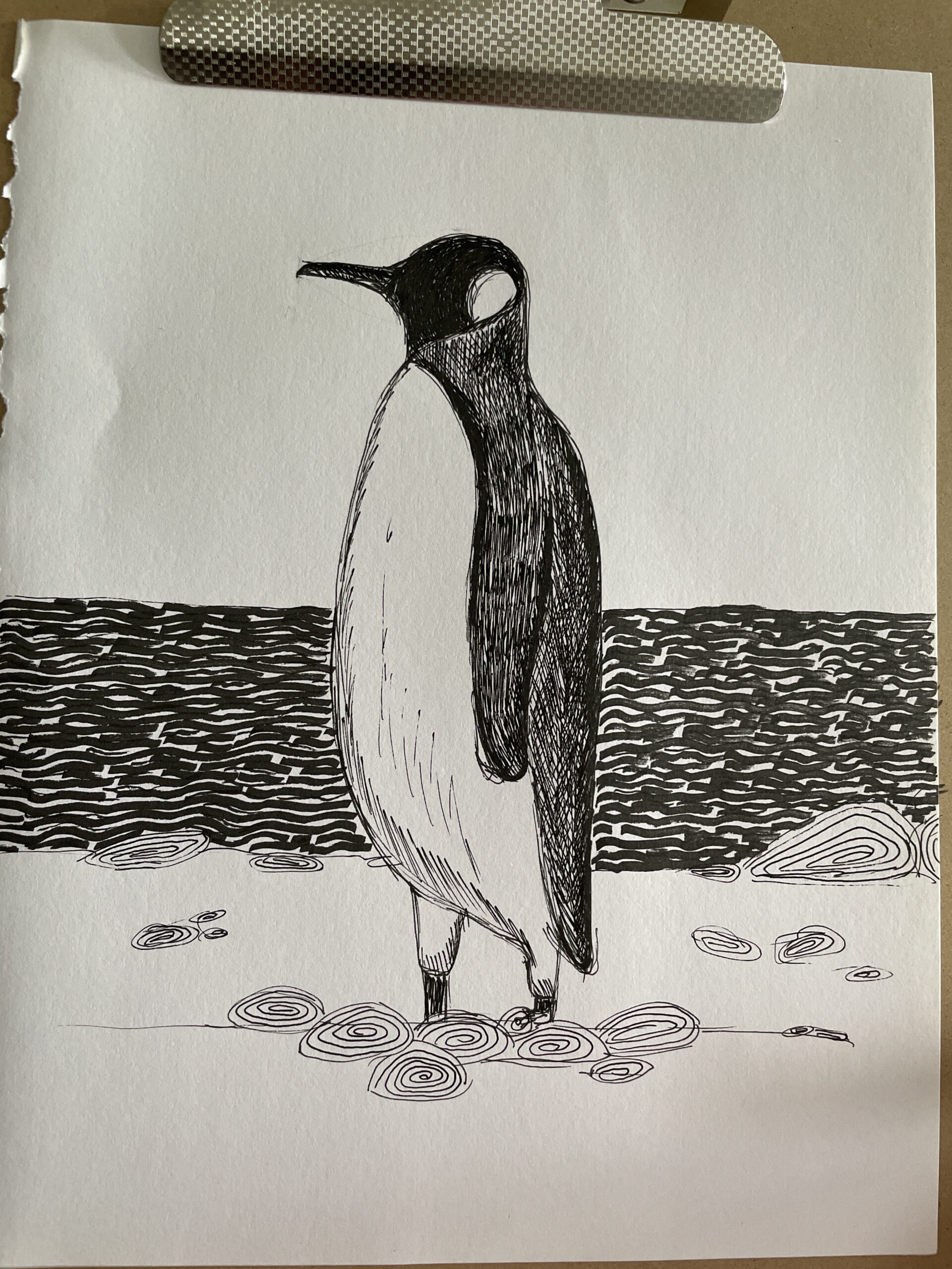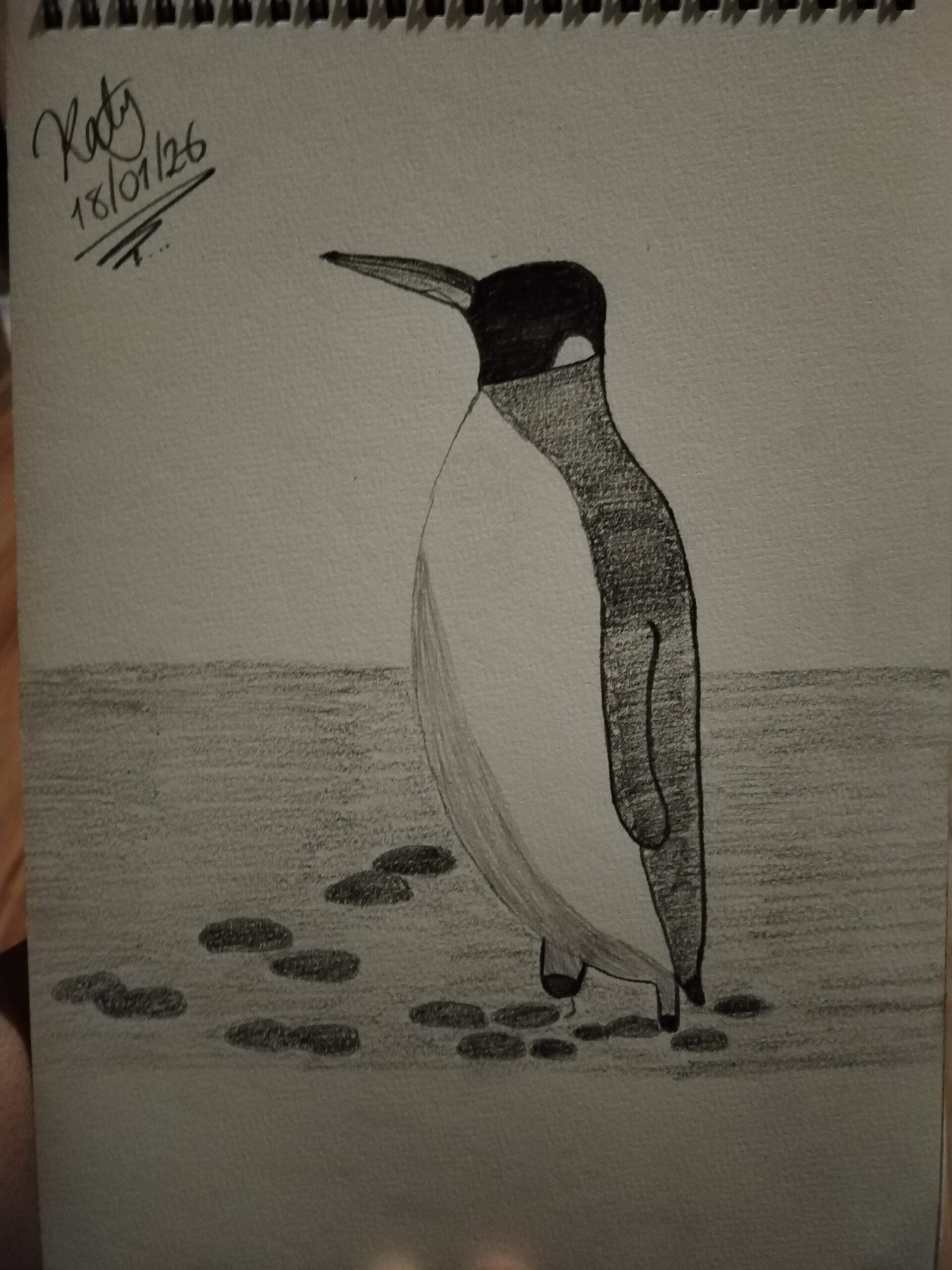 Andrea, this is such a sweet penguin. I really like the way the darker shading on the head and wing gives it personality, and the stones on the ground make it feel like it belongs in its little world. Thanks for sharing your drawing and being part of today’s session.