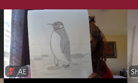 I enjoyed this moment with everyone. I will definitely come back to this session. This is my first time drawing, and I was at first nervous, but I am excited to do this again. Everyone has their own unique way of drawing a penguin and enjoys viewing it.