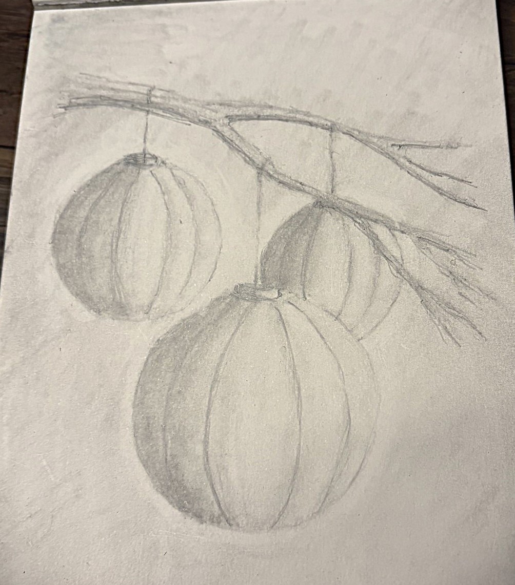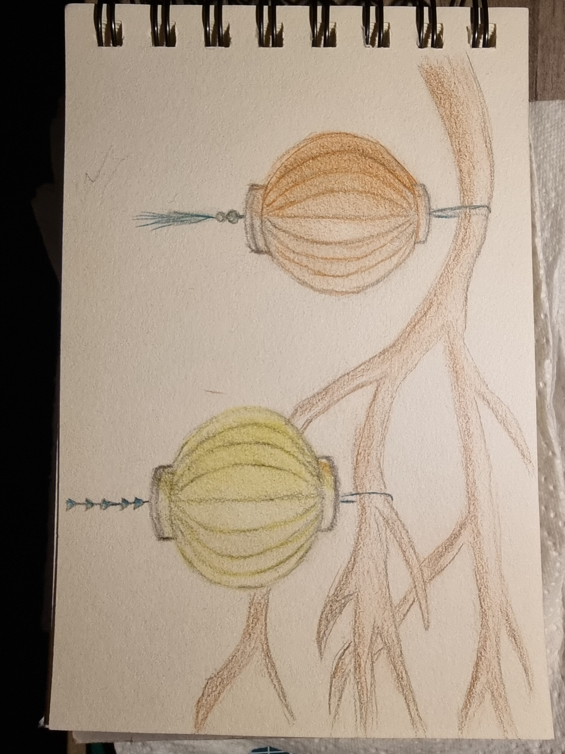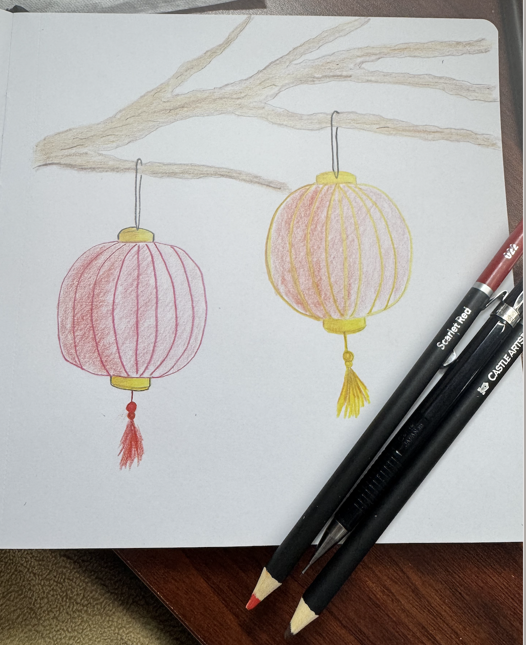 Oh my, Carr! You managed to capture such depth and dimension in your sketch, and the texture on your branch is amazing. Your lanterns seem to be blowing gently in the breeze. We are so glad you found the session relaxing and fun!