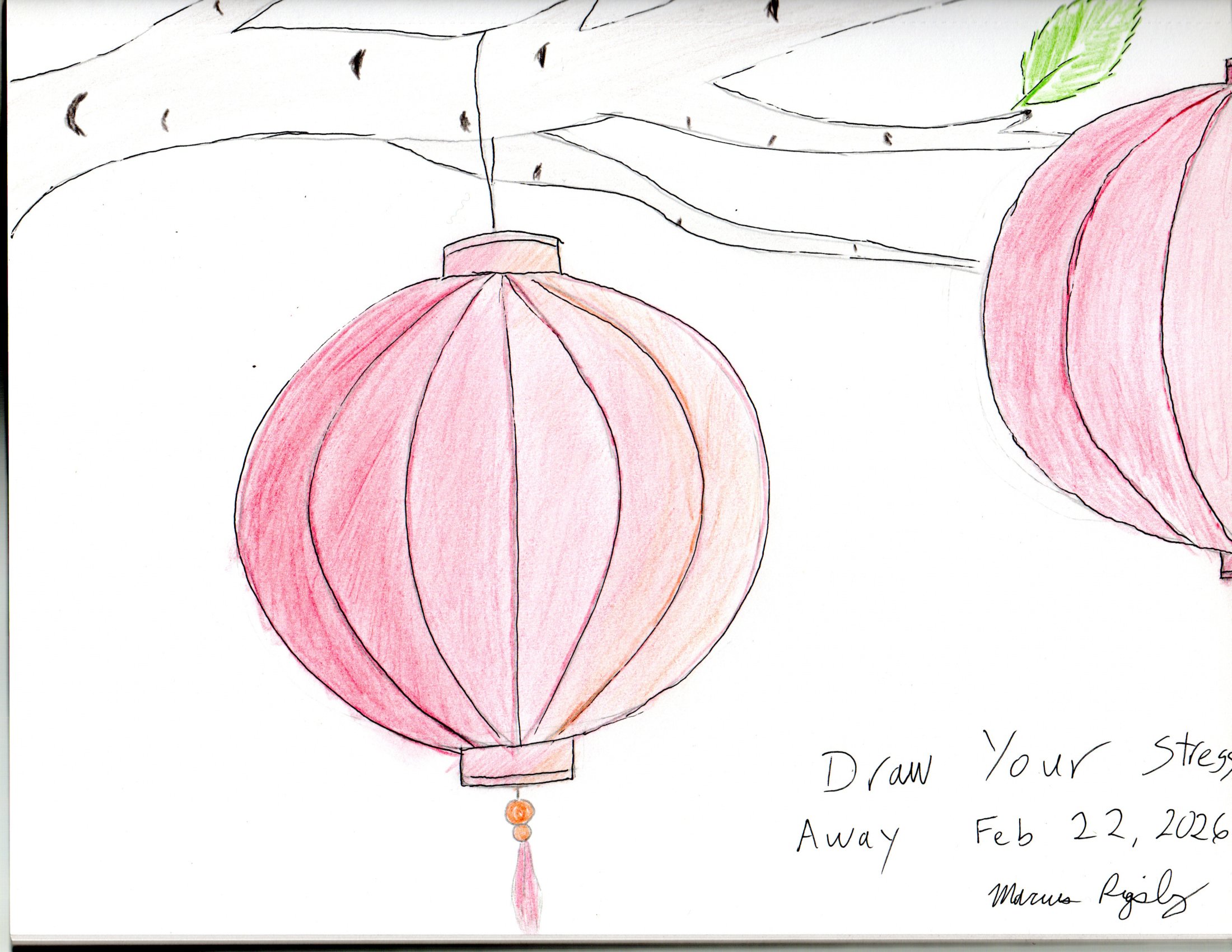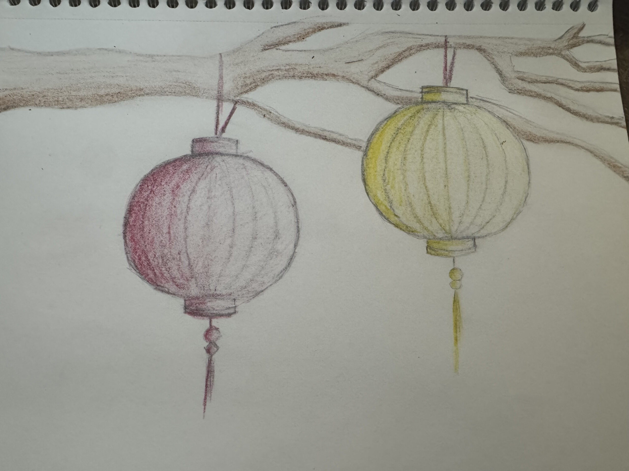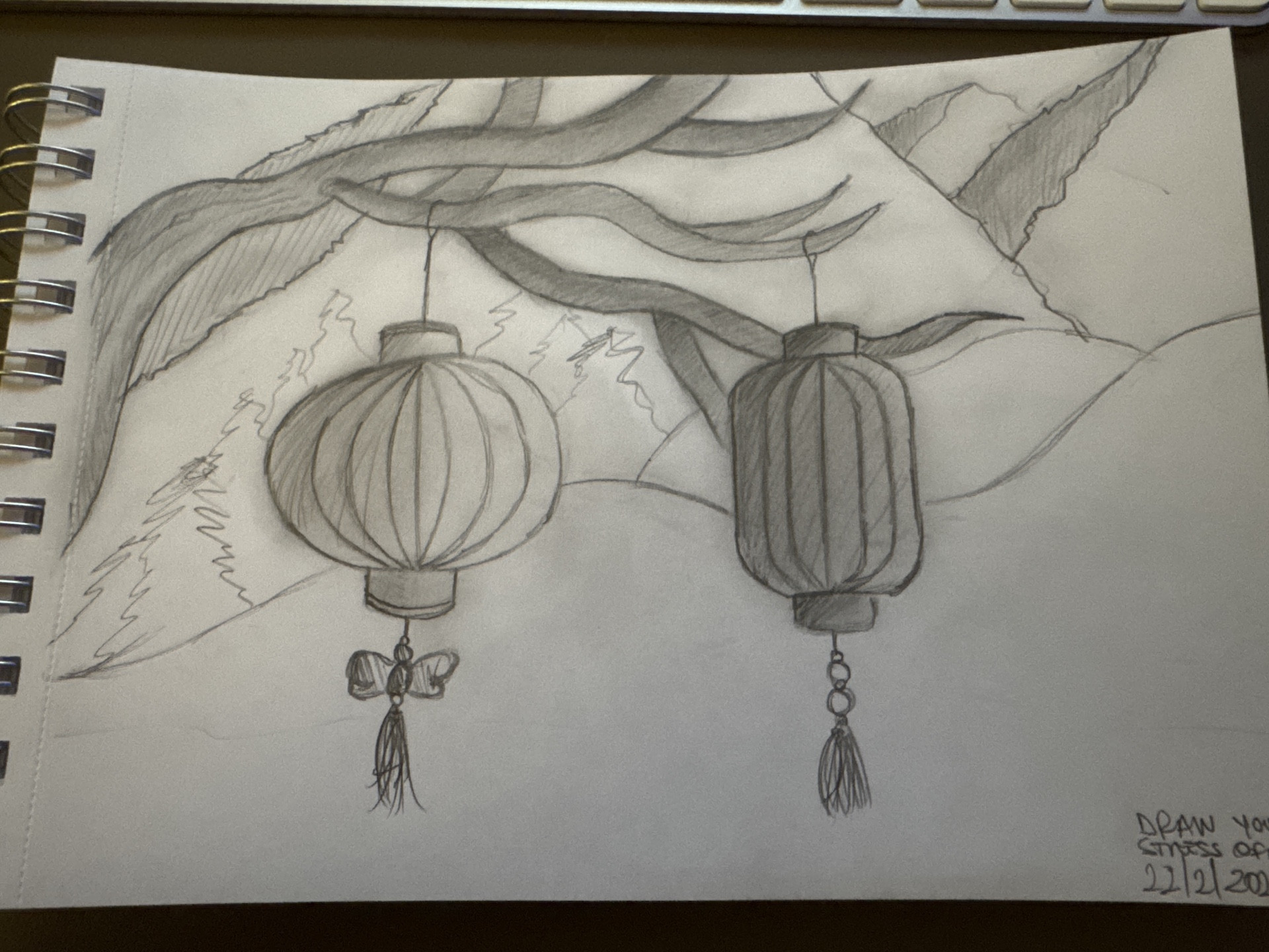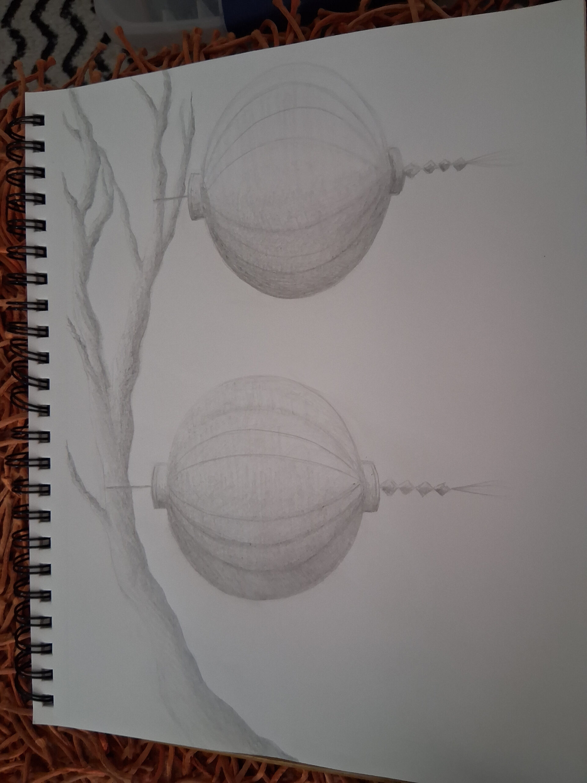 Oh my, Carr! You managed to capture such depth and dimension in your sketch, and the texture on your branch is amazing. Your lanterns seem to be blowing gently in the breeze. We are so glad you found the session relaxing and fun!