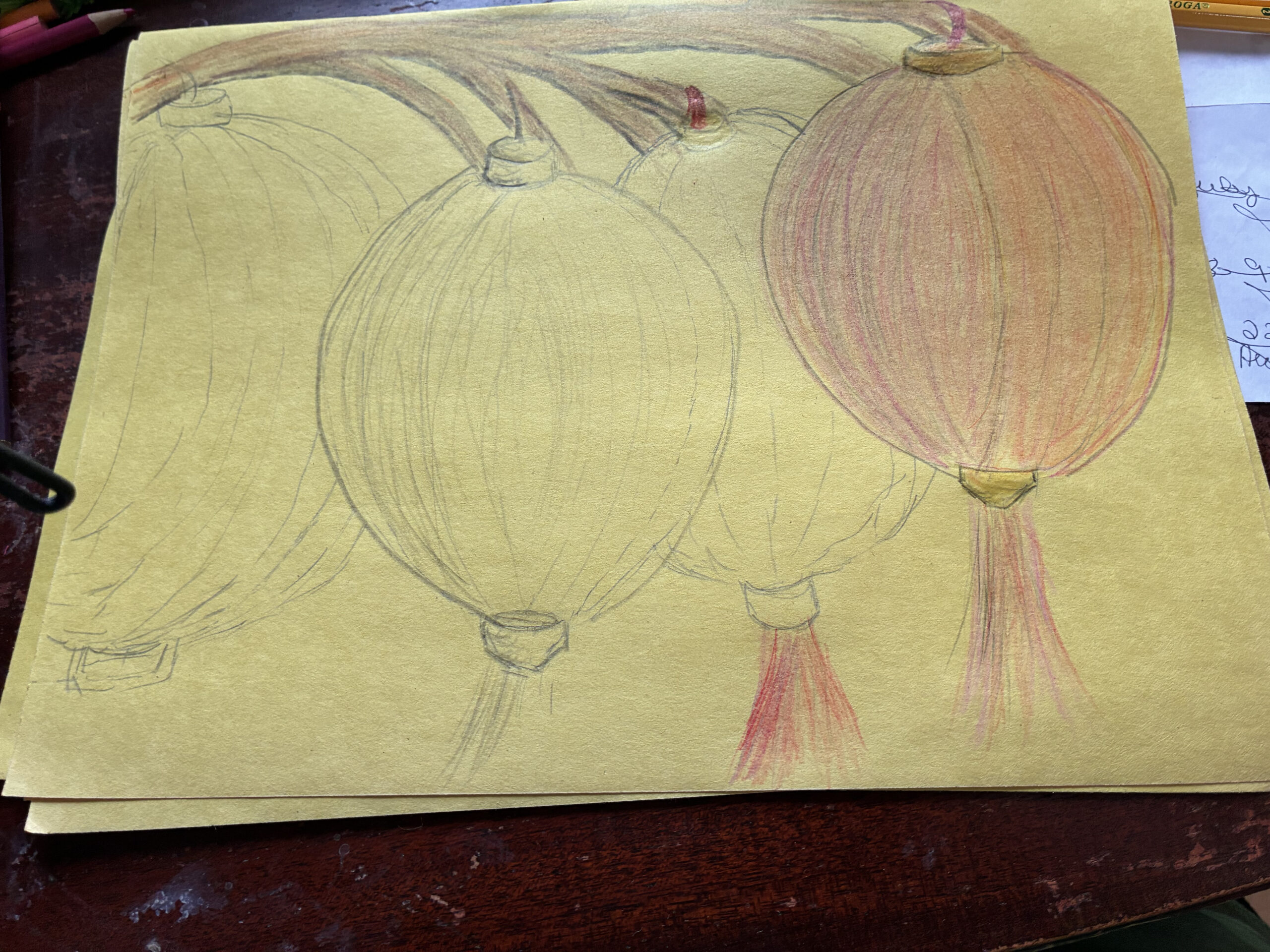 Nyasha, I love that you explored adding color. The richness you created makes the lanterns feel vibrant and full. It takes courage to experiment, and you did it beautifully!