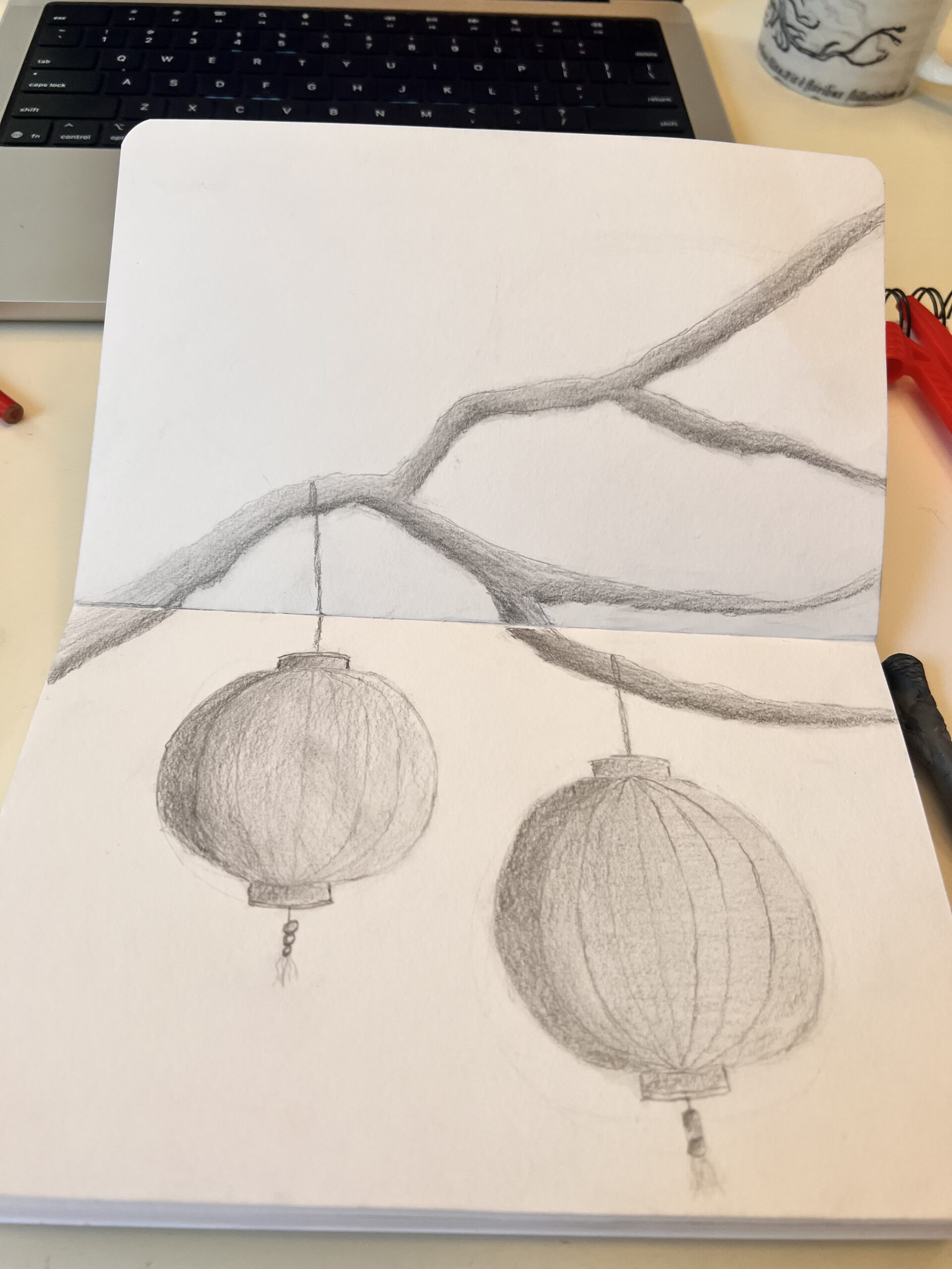 Sandra, this is gorgeous. The flow of your branches and the gentle shading on your lanterns create such a peaceful feeling to your sketch. We’re so glad you joined us!