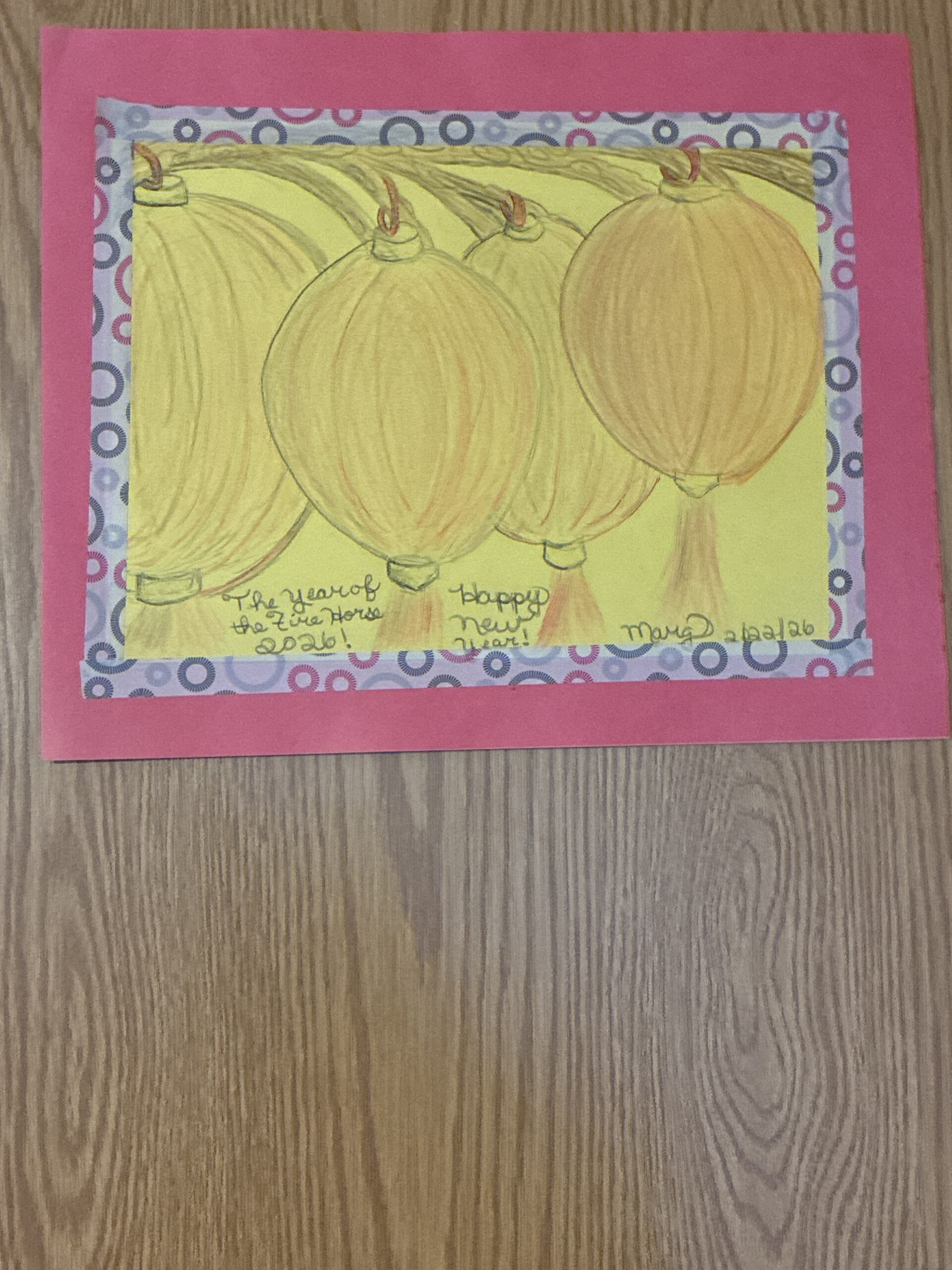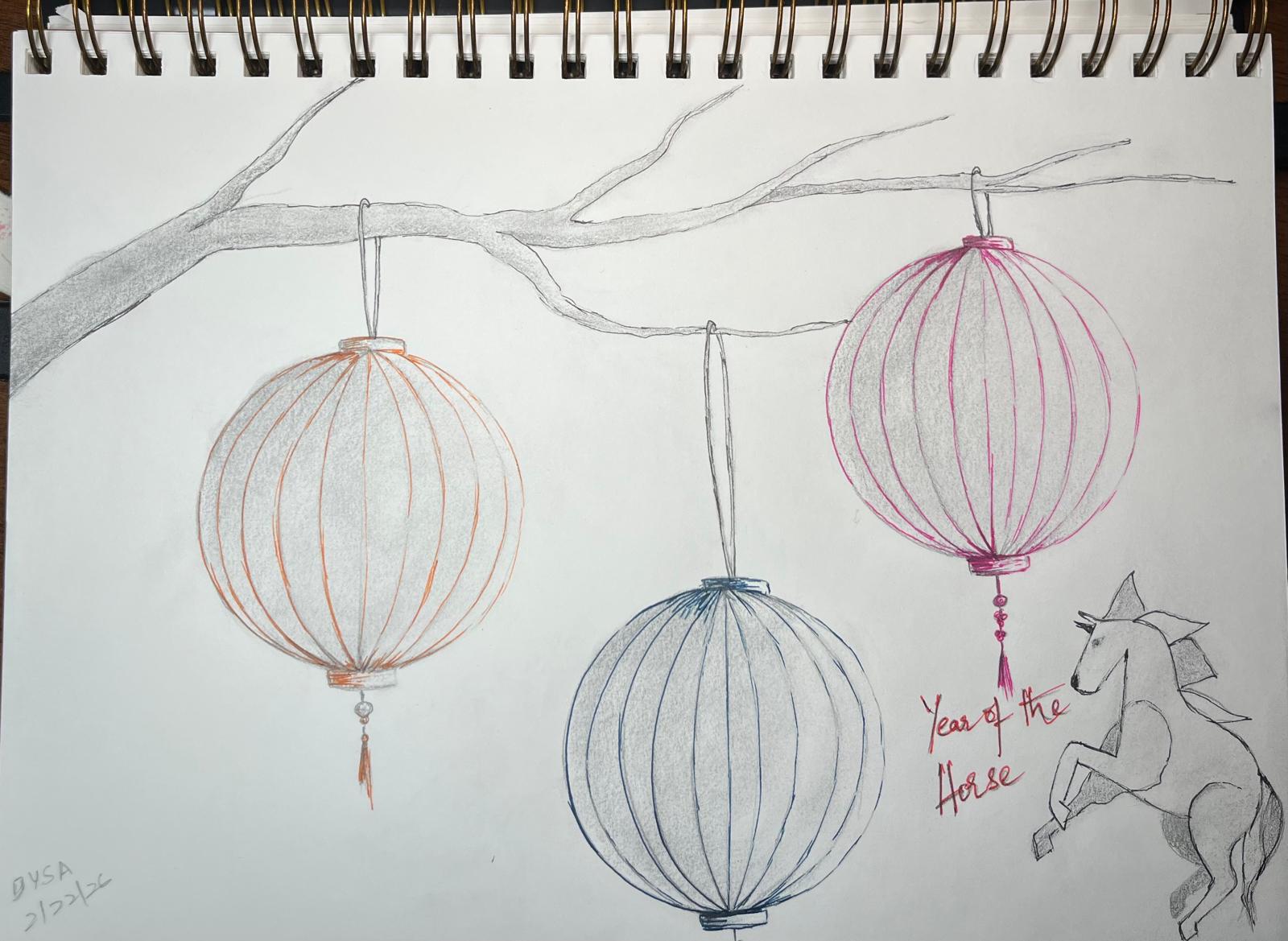 Love the addition of the Fire Horse to your sketch, Anu! Its playfulness makes the whole piece feel yours uniquely. And, your colorful lanterns feel light and airy. We’re so glad you had fun creating with us!